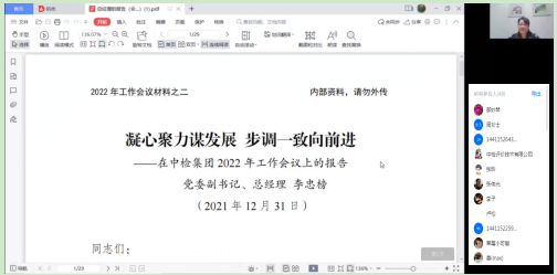 中檢評(píng)價(jià)公司領(lǐng)導(dǎo)班子通過(guò)網(wǎng)絡(luò)參加了中國(guó)中檢2022年工作會(huì)議,會(huì)議全面回顧總結(jié)了集團(tuán)2021年主要工作,部署了2022年工作任務(wù)。為及時(shí)傳達(dá)工作會(huì)議精神,1月4日,中檢評(píng)價(jià)組織召開(kāi)學(xué)習(xí)集團(tuán)工作會(huì)議精神。由于近期西安新冠肺炎...