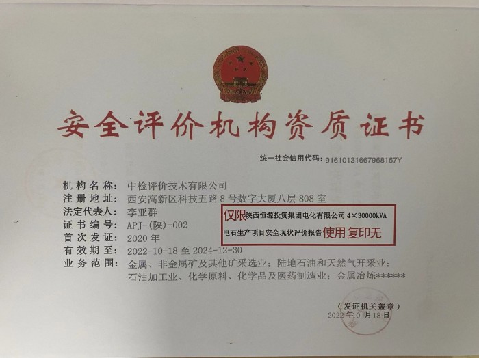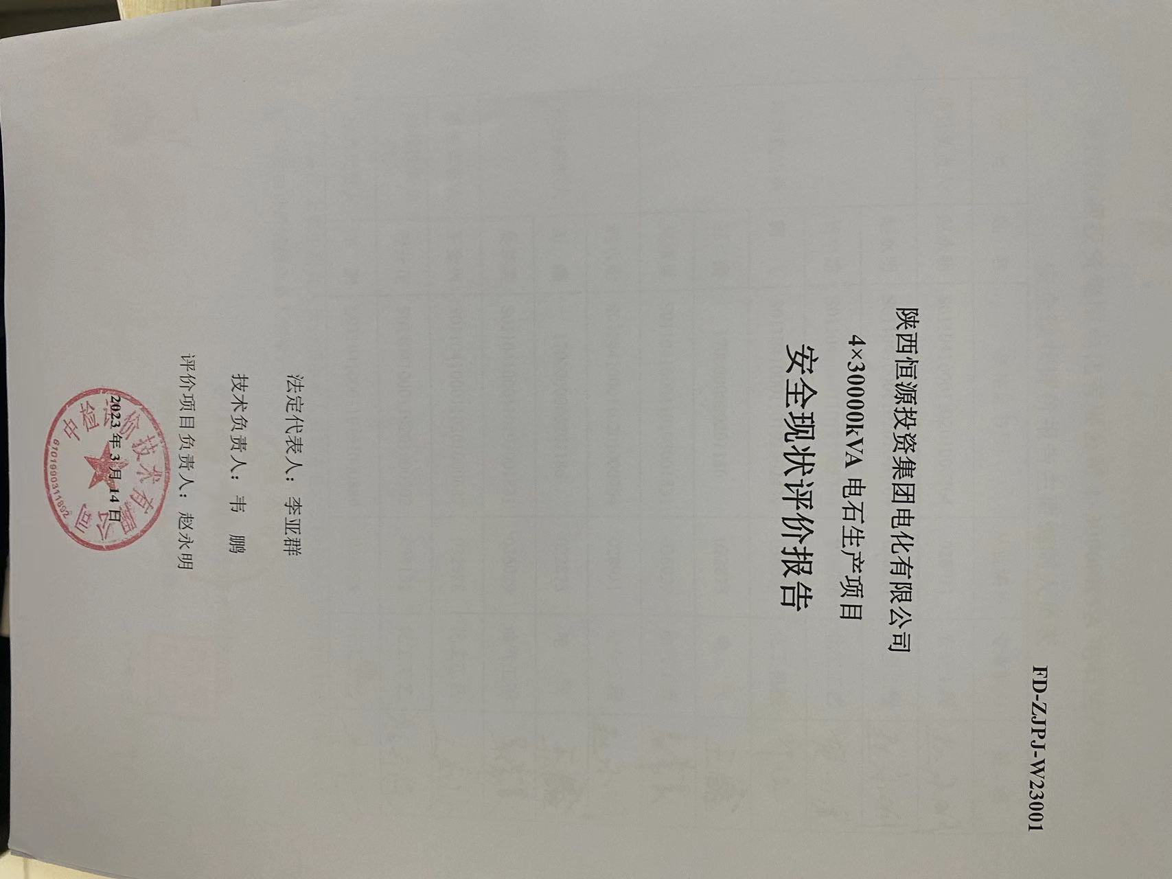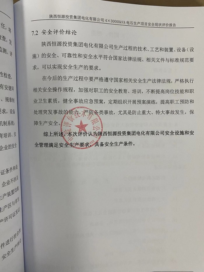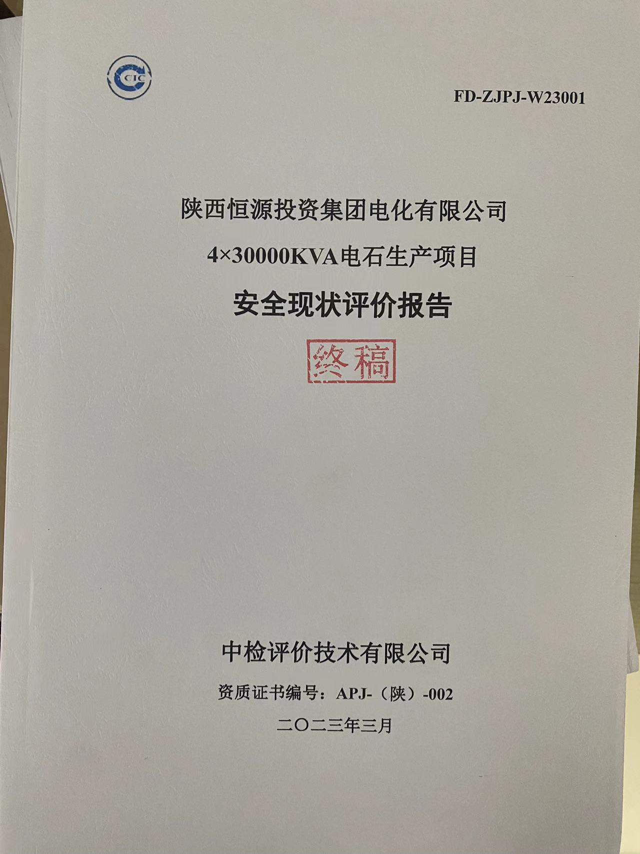 陜西恒源投資集團(tuán)電化有限公司4×30000kVA電石生產(chǎn)項(xiàng)目安全現(xiàn)狀評(píng)價(jià)報(bào)告