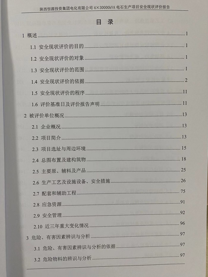 項(xiàng)目名稱 | 陜西恒源投資集團(tuán)電化有限公司4×30000kVA電石生產(chǎn)項(xiàng)目安全現(xiàn)狀評(píng)價(jià)報(bào)告 | ||||||