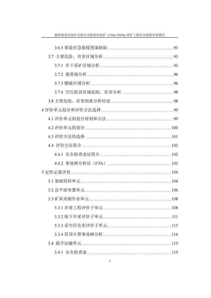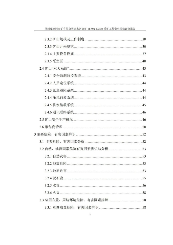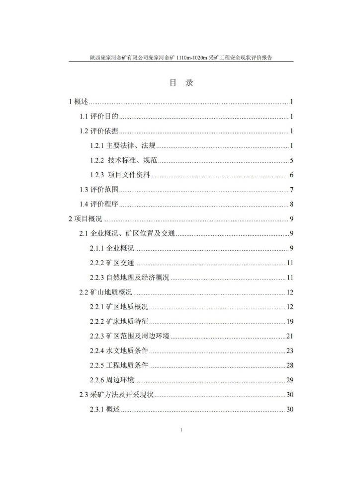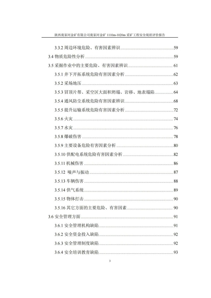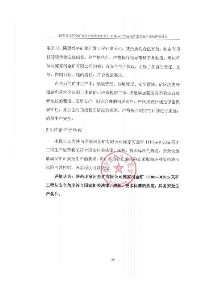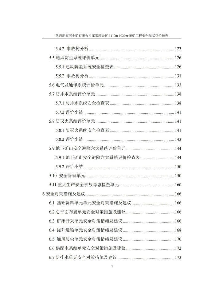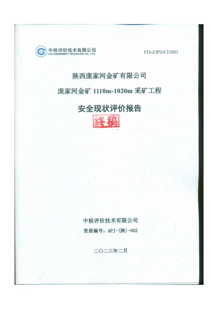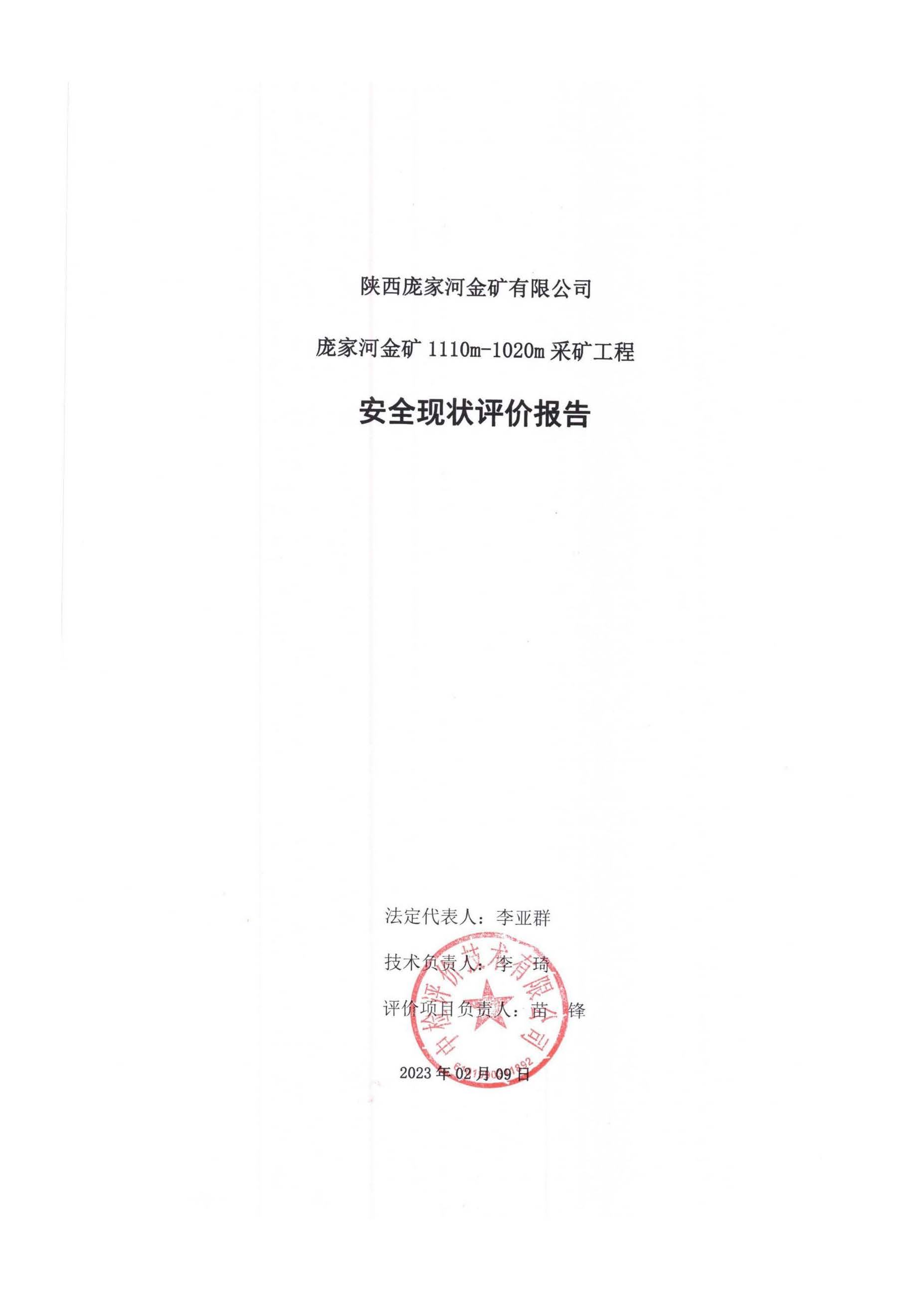 陜西龐家河金礦有限公司龐家河金礦1110m-1020m采礦工程安全現(xiàn)狀評價報告
