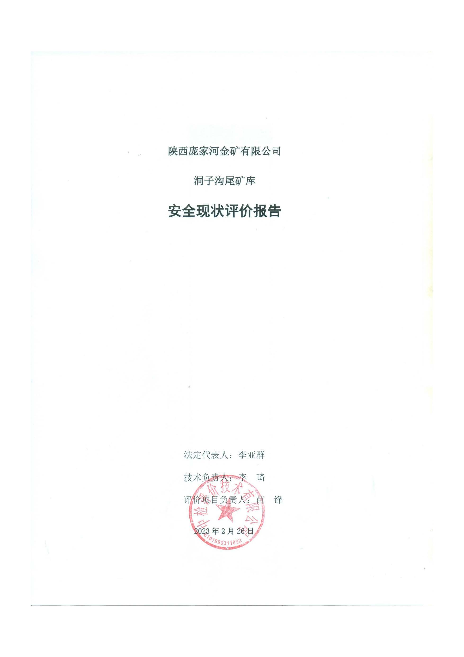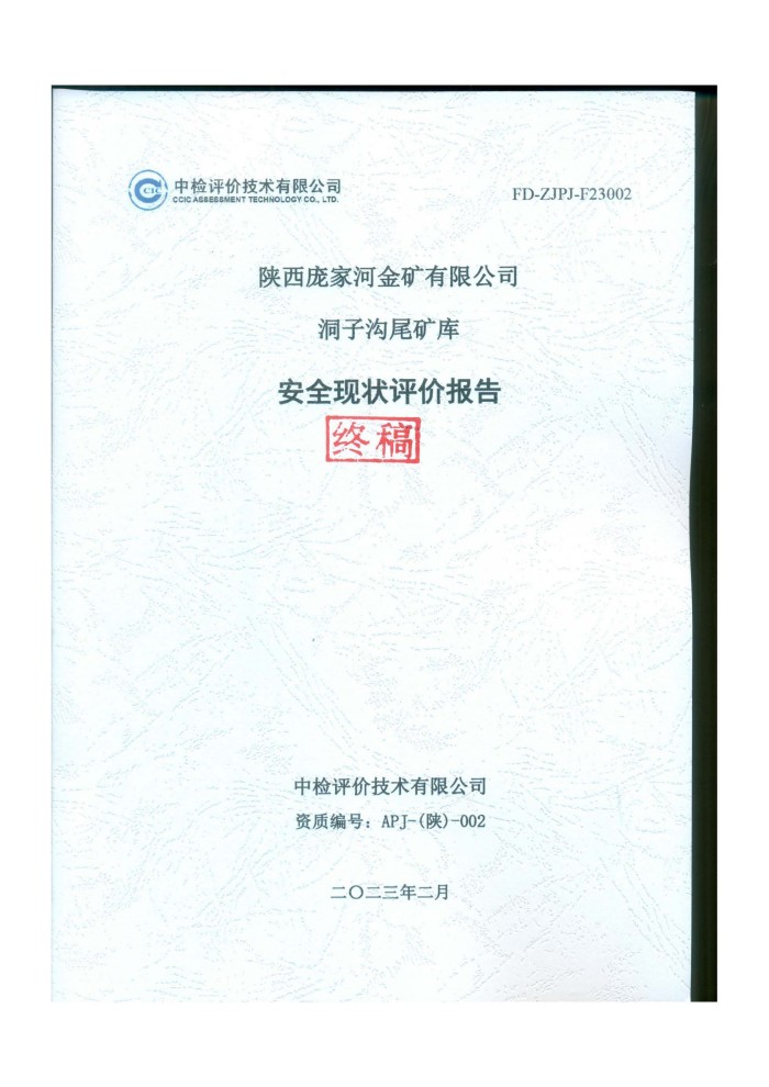 陜西龐家河金礦有限公司洞子溝尾礦庫安全現(xiàn)狀評(píng)價(jià)報(bào)告