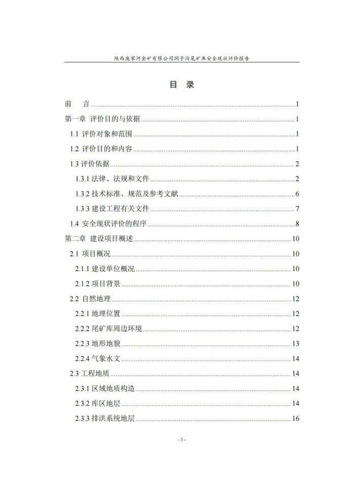項(xiàng)目名稱 | 陜西龐家河金礦有限公司洞子溝尾礦庫 安全現(xiàn)狀評(píng)價(jià)報(bào)告 | ||||||