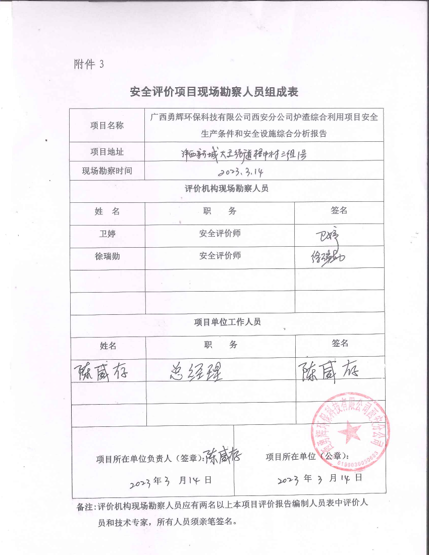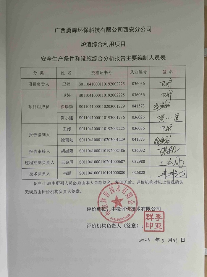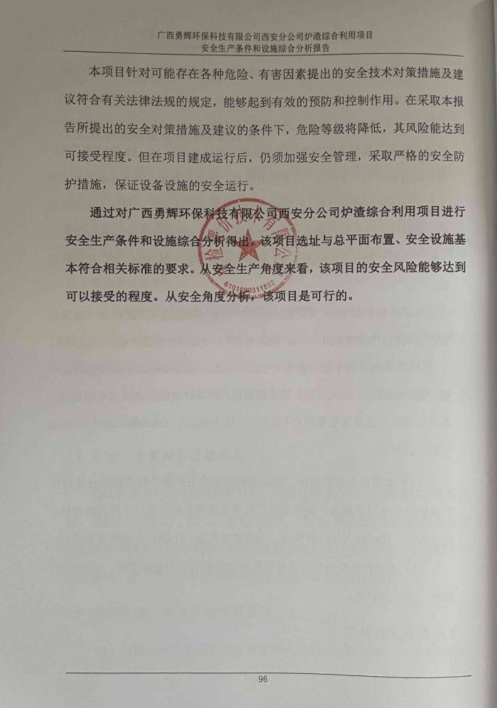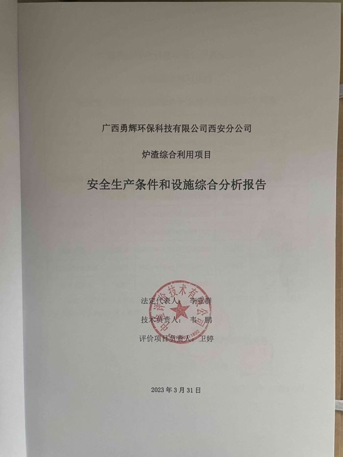 廣西勇輝環(huán)保科技有限公司西安分公司爐渣綜合利用項目安全生產條件和設施綜合分析報告