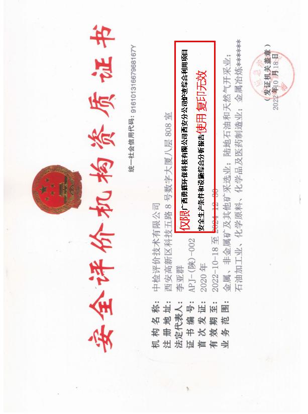 機構名稱 | 中檢評價技術有限公司 | 資質證號 | APJ-(陜)-002 | ||||