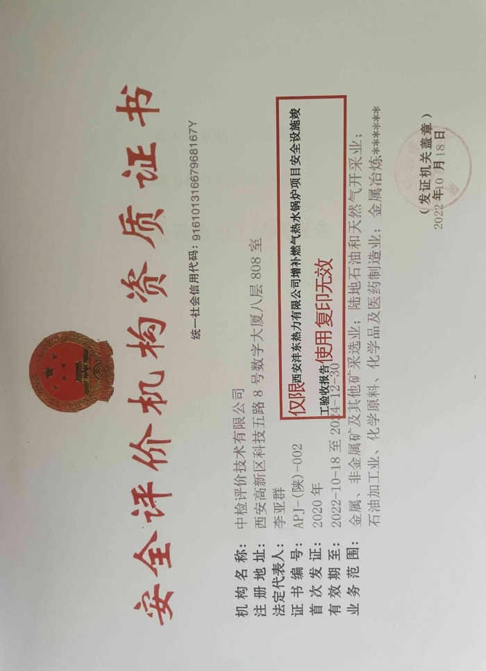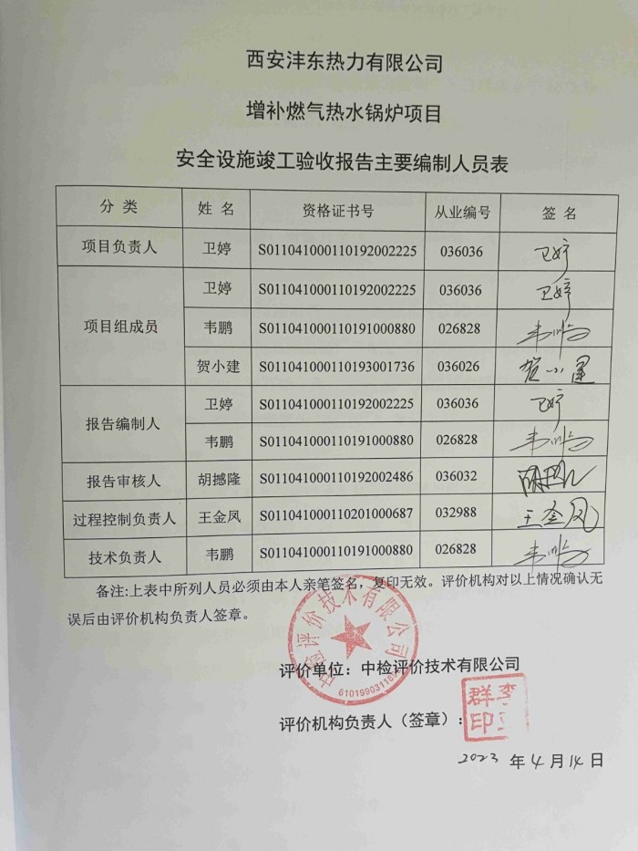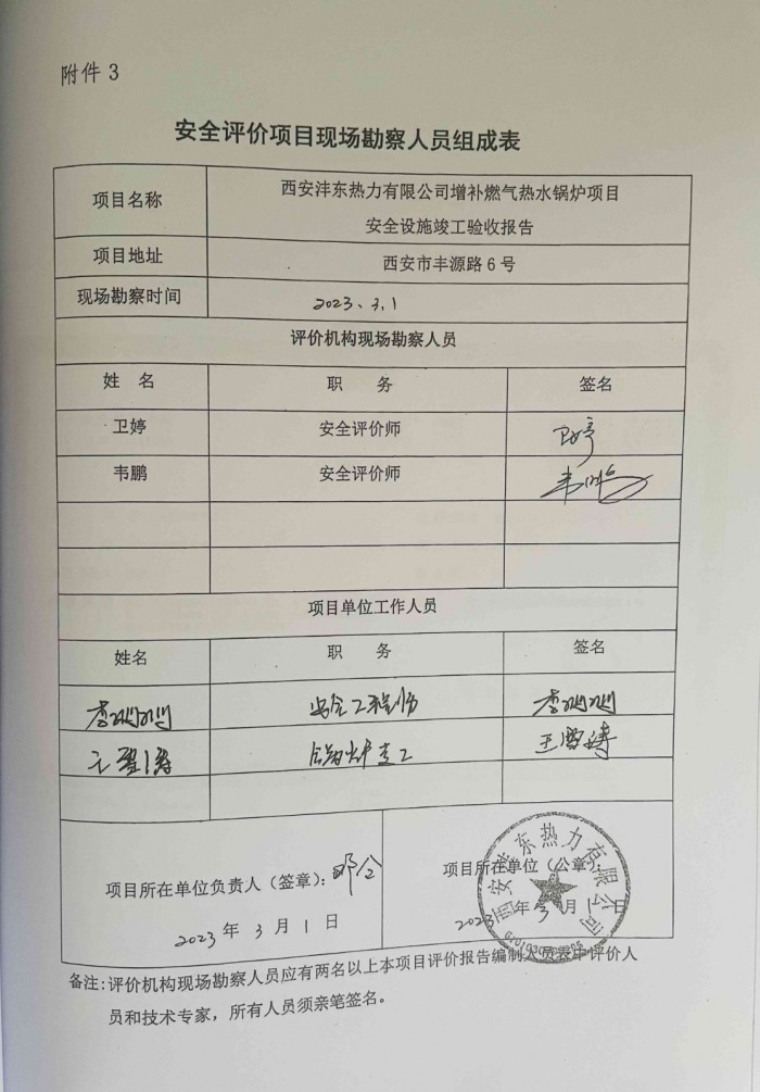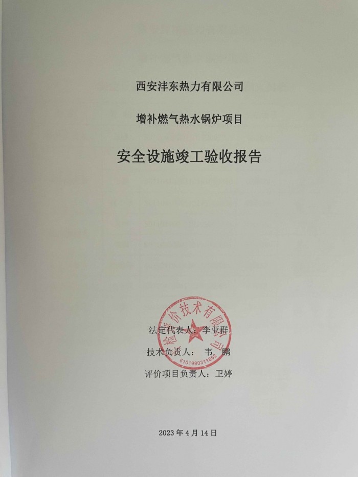 西安灃東熱力有限公司增補(bǔ)燃?xì)鉄崴仩t項(xiàng)目安全設(shè)施竣工驗(yàn)收?qǐng)?bào)告