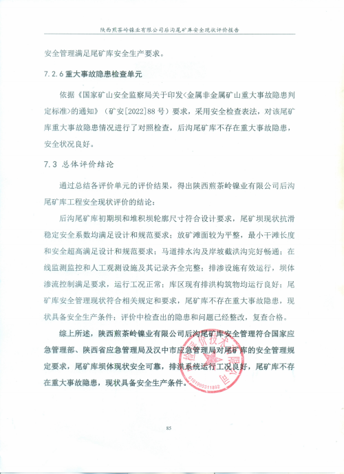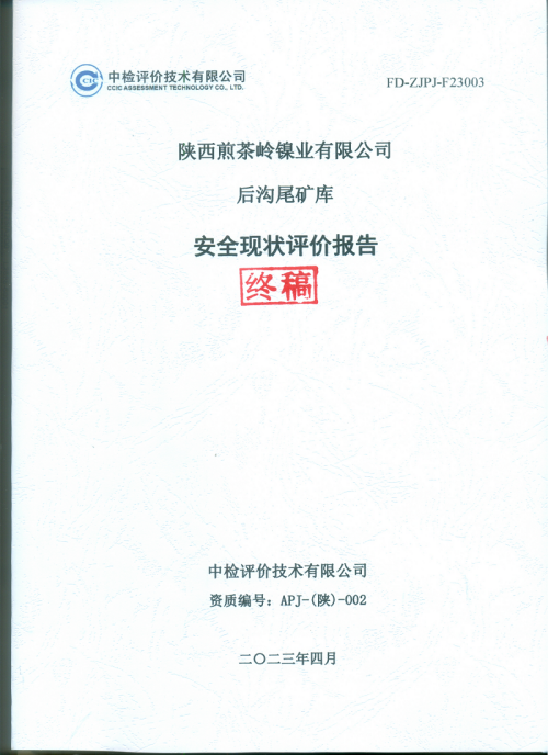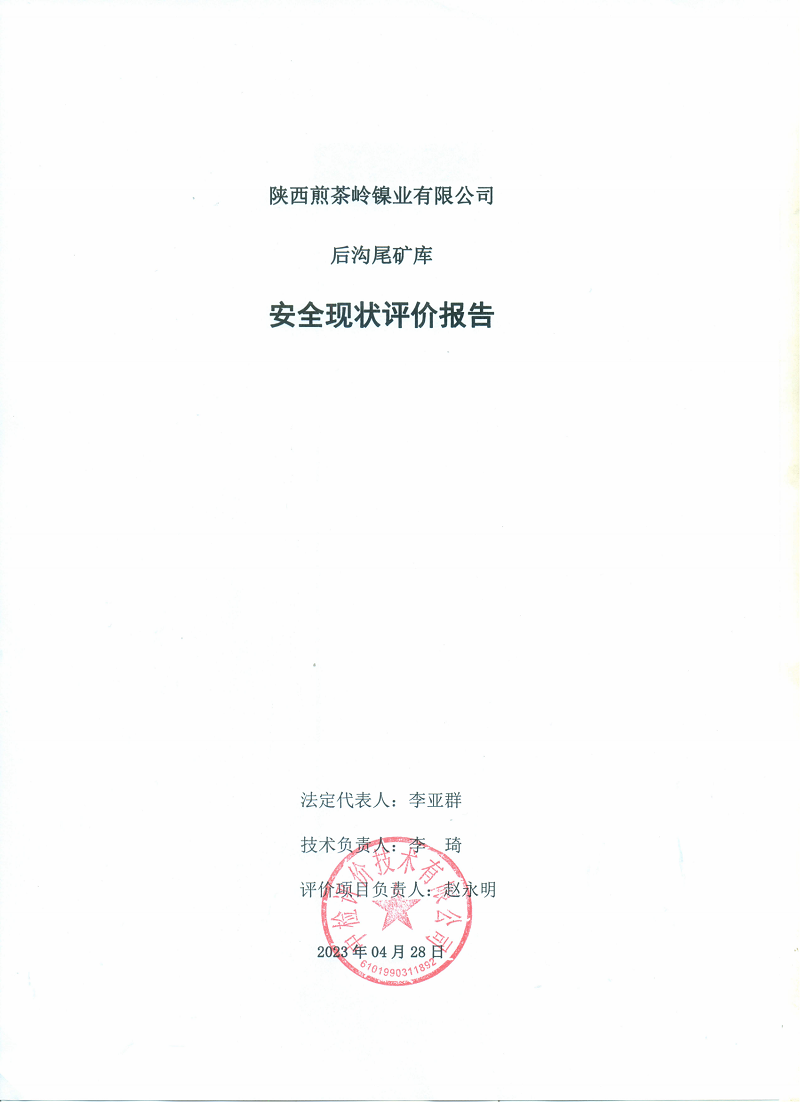 陜西煎茶嶺鎳業(yè)有限公司后溝尾礦庫(kù)安全現(xiàn)狀評(píng)價(jià)