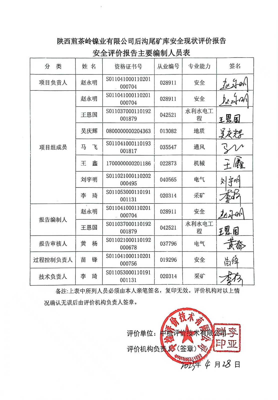 報(bào)告信息 | 封皮(蓋章)附后 | 評(píng)價(jià)組成員(簽字頁(yè))附后 | 評(píng)價(jià)報(bào)告目錄附后、 評(píng)價(jià)結(jié)論頁(yè)(蓋章)附后 | |||
