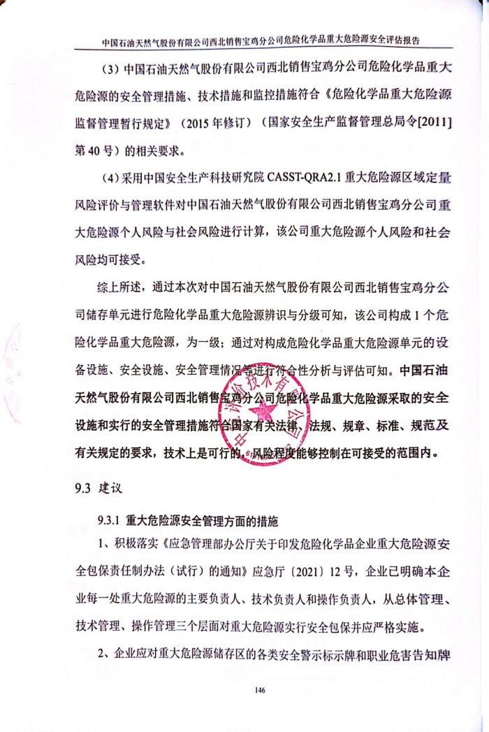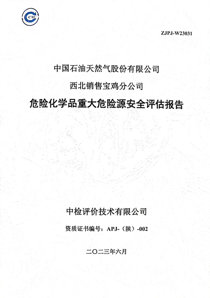 中國石油天然氣股份有限公司西北銷售寶雞分公司危險化學(xué)品重大危險源安全評估報告