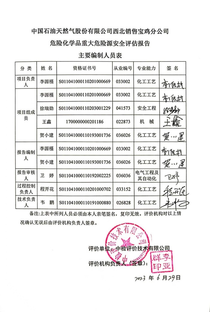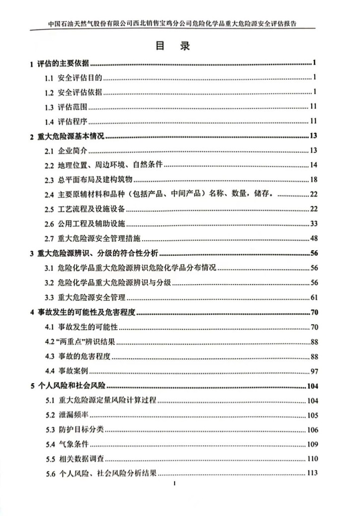 項目名稱 | 中國石油天然氣股份有限公司西北銷售寶雞分公司危險化學(xué)品重大危險源安全評估報告 | |||||