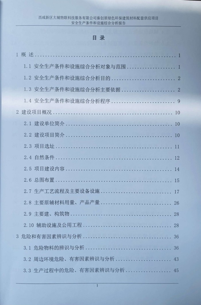 項目名稱 | 西咸新區(qū)大城物聯(lián)科技服務(wù)有限公司秦創(chuàng)原綠色環(huán)保建筑材料配套供應(yīng)項目 安全生產(chǎn)條件和設(shè)施綜合分析報告 | ||||||