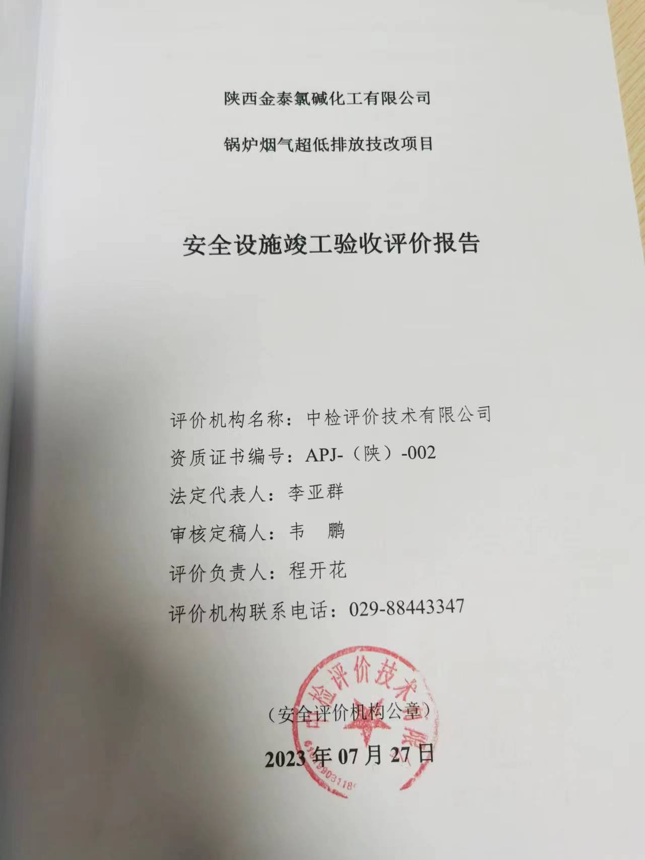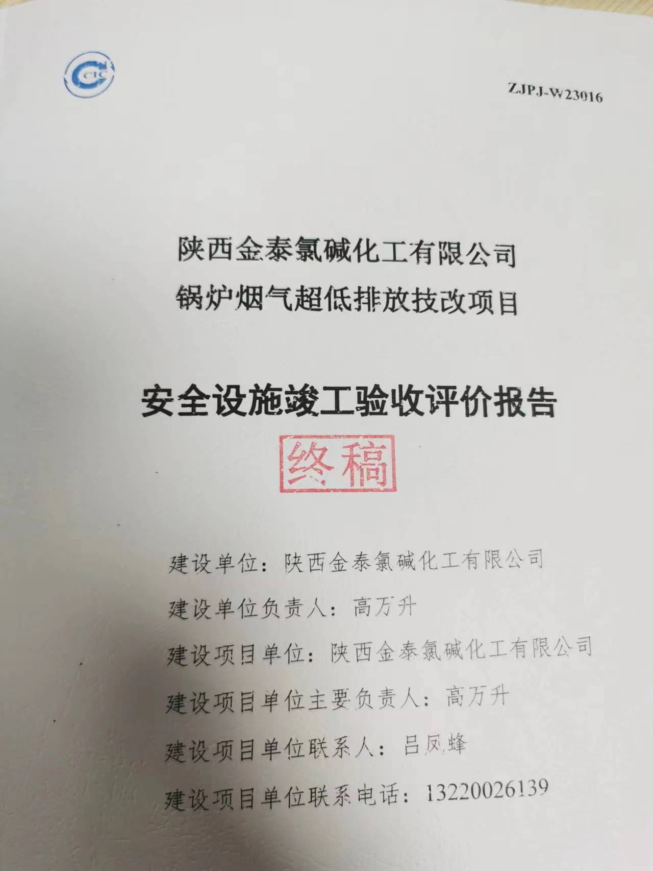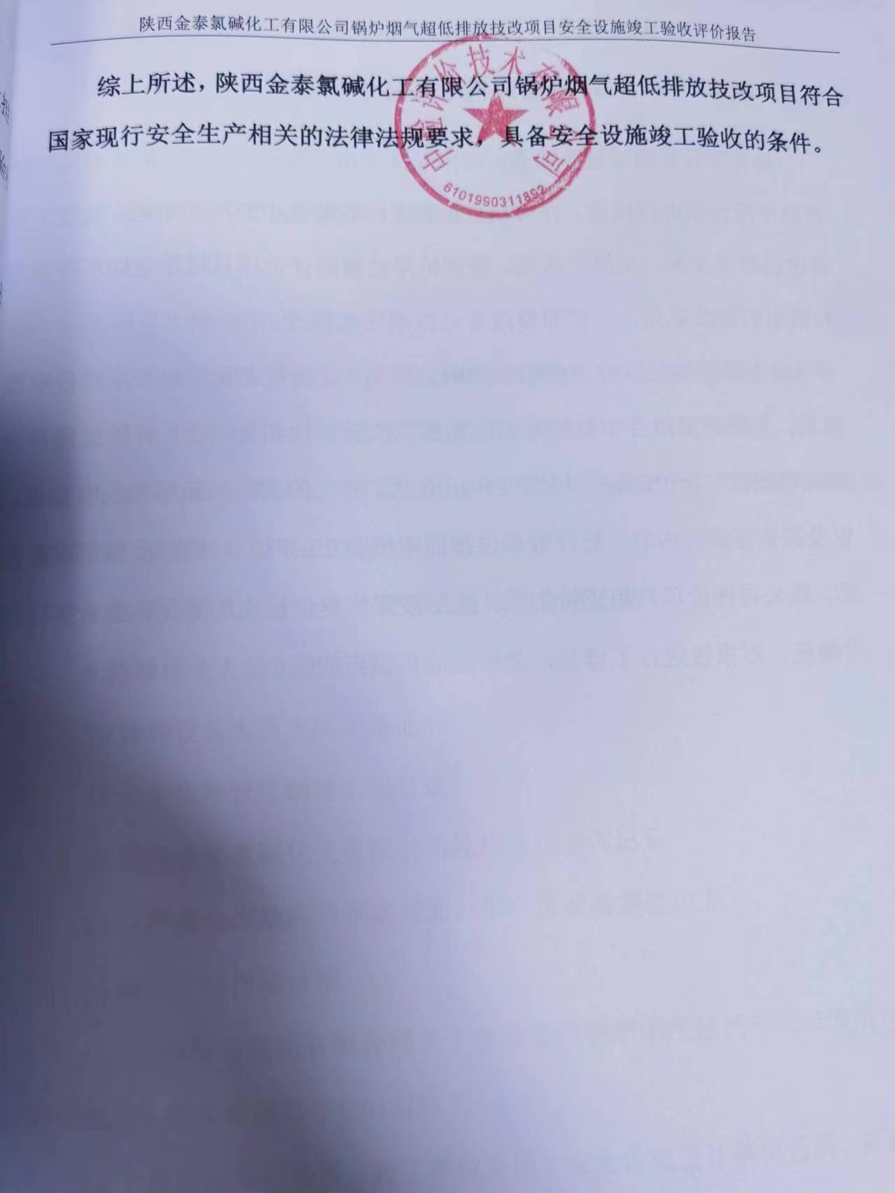 陜西金泰氯堿化工有限公司鍋爐煙氣超低排放技改項目安全設(shè)施竣工驗收評價