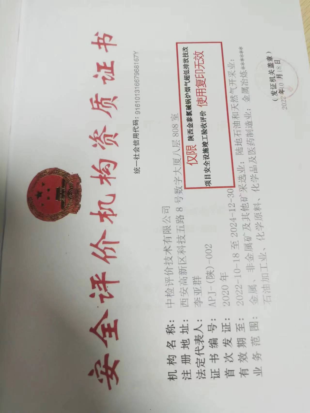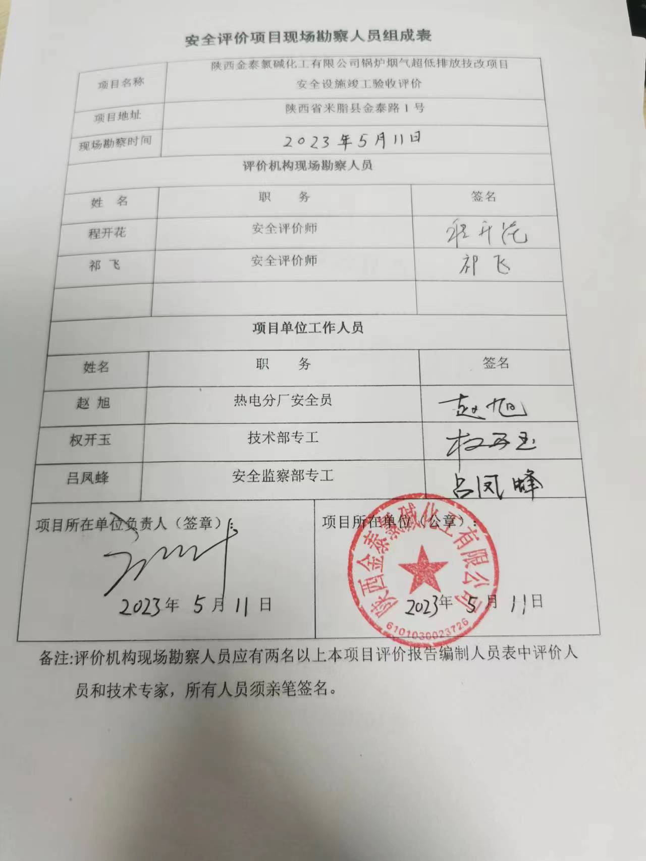 項目名稱 | 陜西金泰氯堿化工有限公司鍋爐煙氣超低排放技改項目安全設(shè)施竣工驗收評價 | ||||||