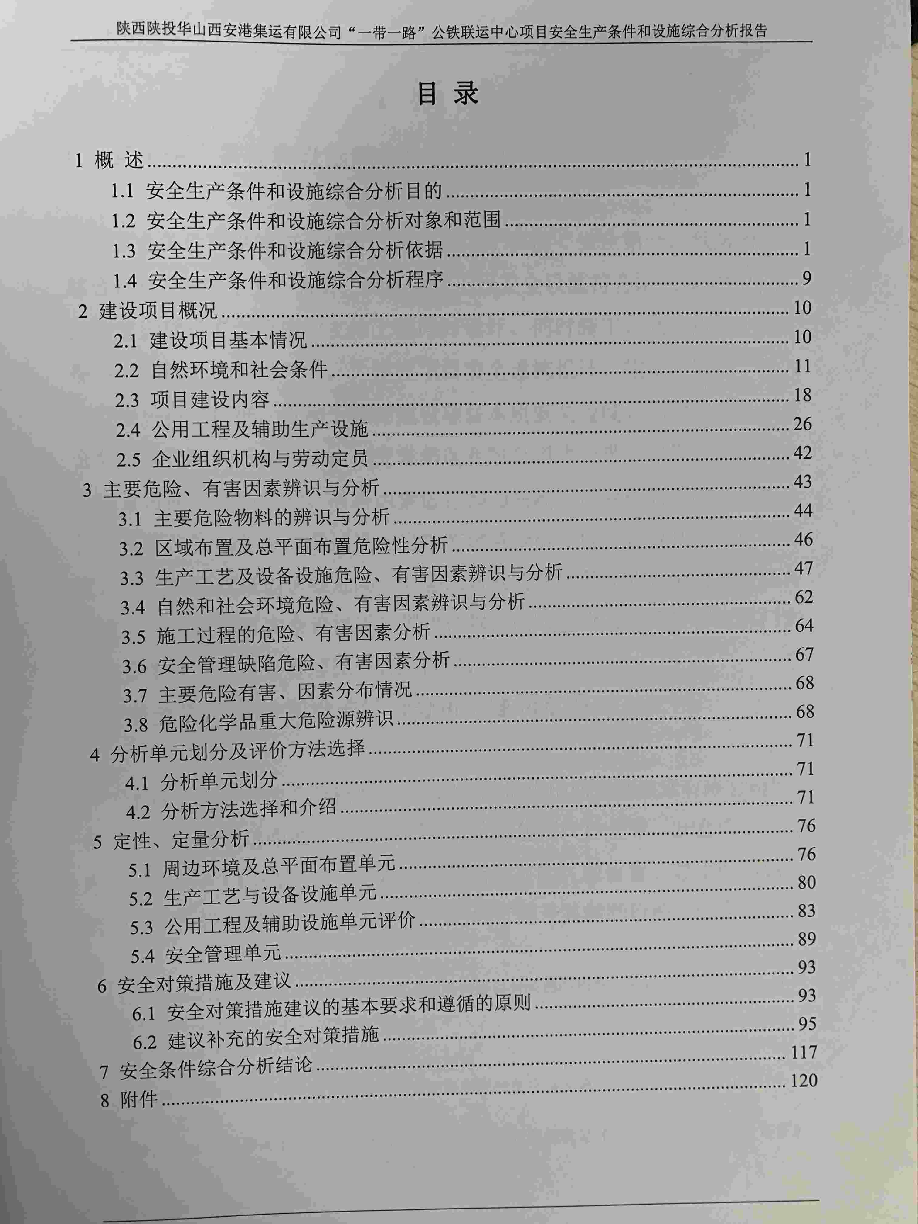 陜西陜投華山西安港集運(yùn)有限公司“一帶一路”公鐵聯(lián)運(yùn)中心項(xiàng)目 安全生產(chǎn)條件和設(shè)施綜合分析報(bào)告