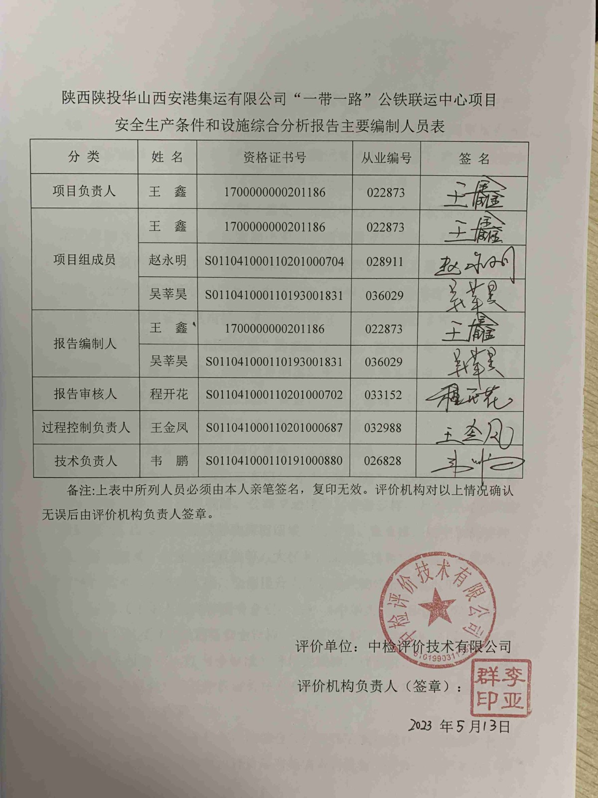 項(xiàng)目名稱 | 陜西陜投華山西安港集運(yùn)有限公司“一帶一路”公鐵聯(lián)運(yùn)中心項(xiàng)目 安全生產(chǎn)條件和設(shè)施綜合分析報(bào)告 | ||||||