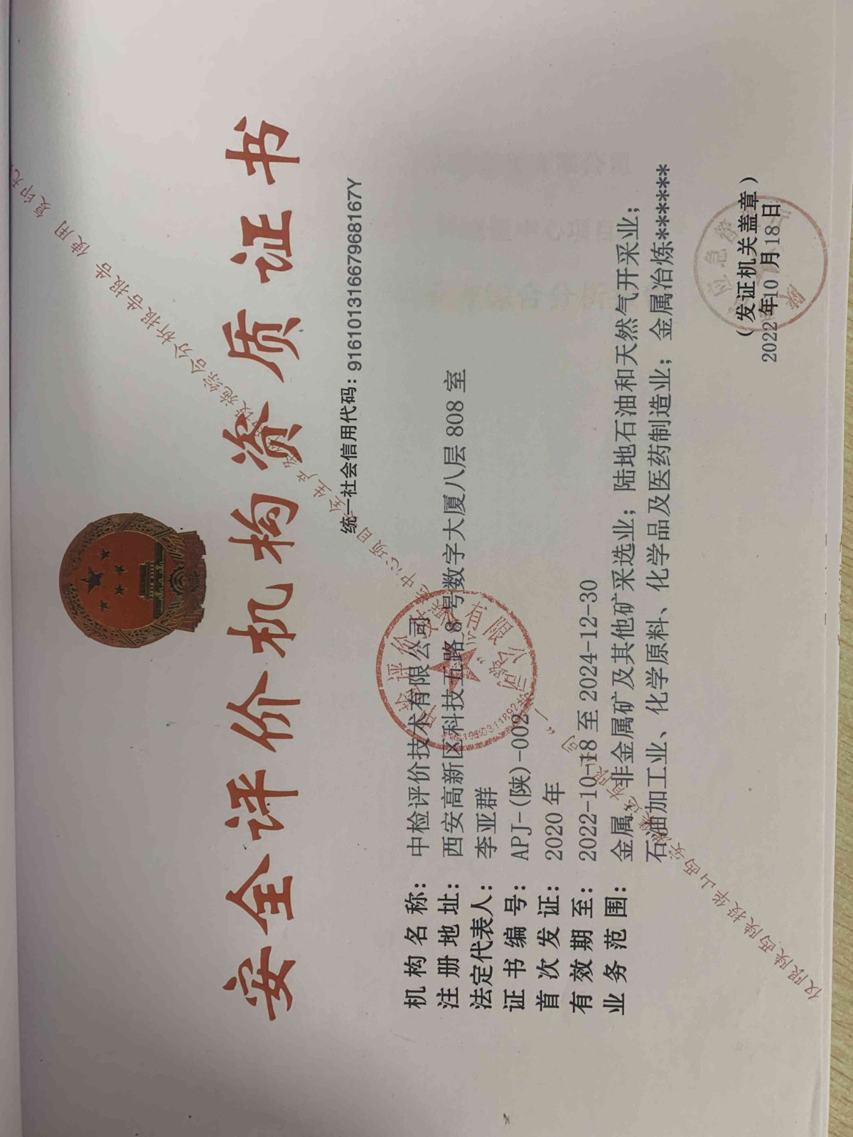 機(jī)構(gòu)名稱 | 中檢評價(jià)技術(shù)有限公司 | 資質(zhì)證號(hào) | APJ-(陜)-002 | ||||