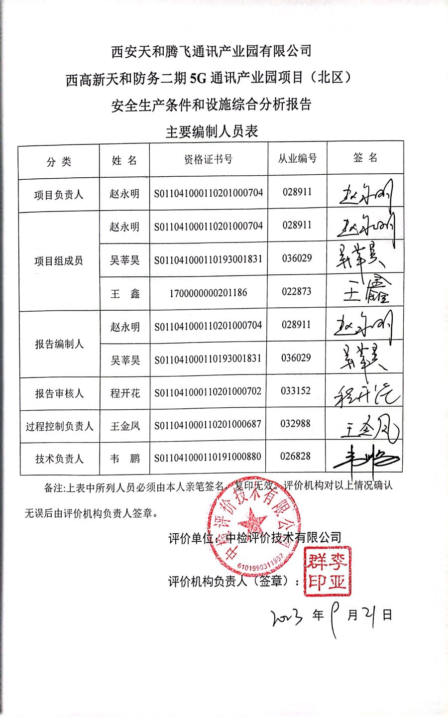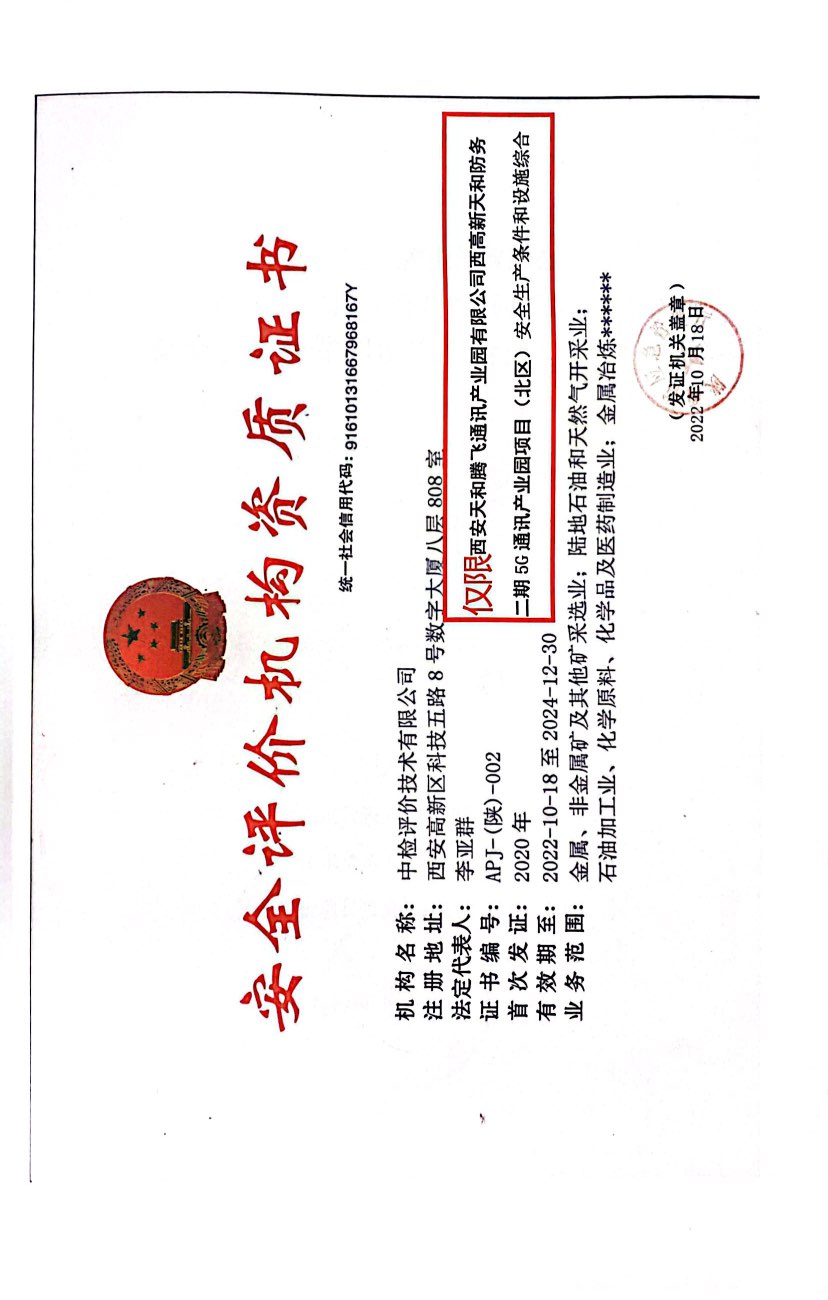 項(xiàng)目名稱 | 西安天和騰飛通訊產(chǎn)業(yè)園有限公司 西高新天和防務(wù)二期5G通訊產(chǎn)業(yè)園項(xiàng)目(北區(qū))安全生產(chǎn)條件和設(shè)施綜合分析 | ||||||