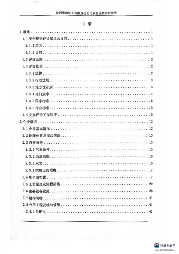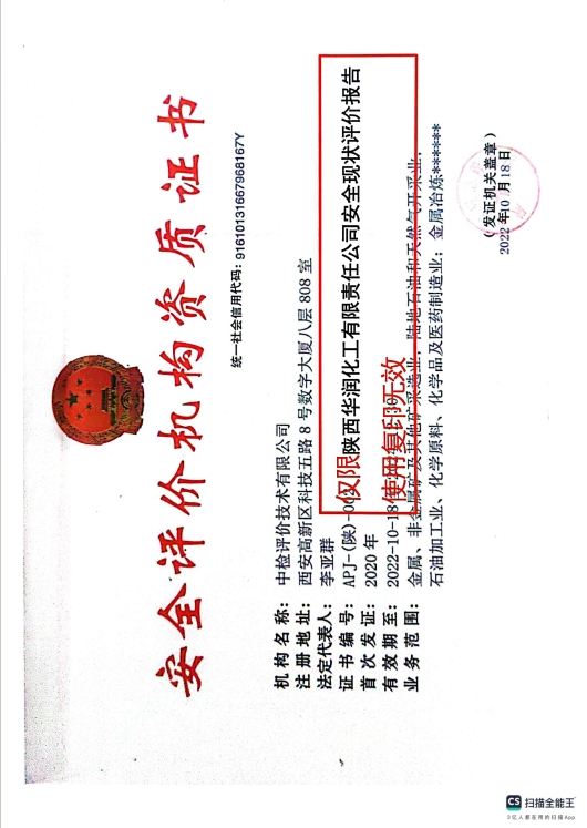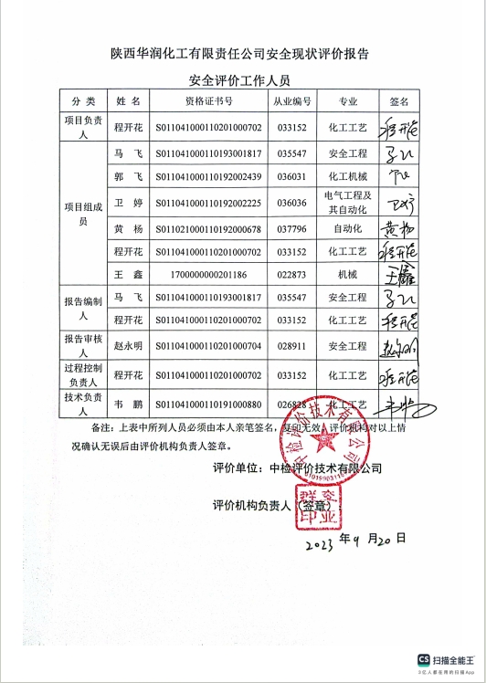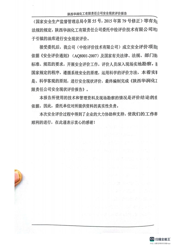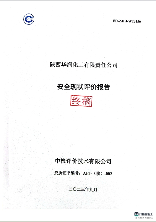 陜西華潤化工有限責(zé)任公司安全現(xiàn)狀評(píng)價(jià)