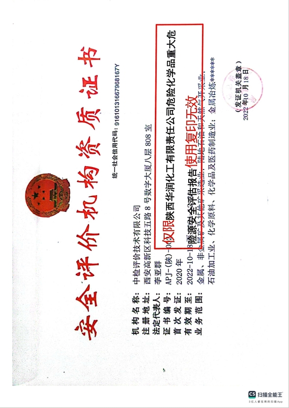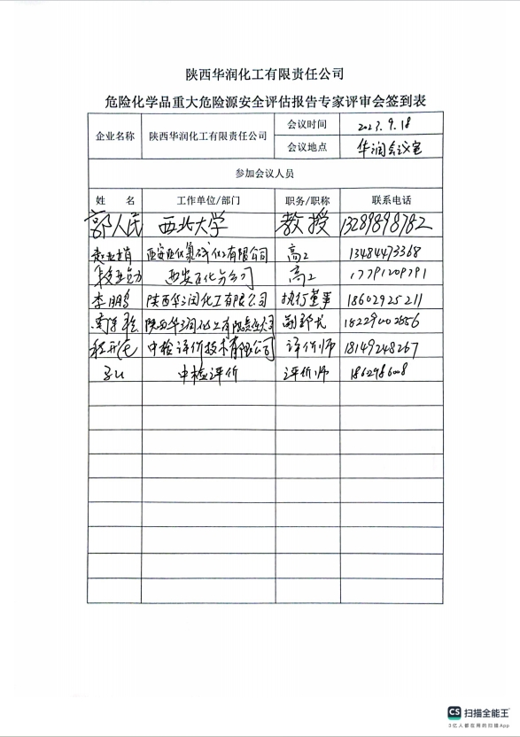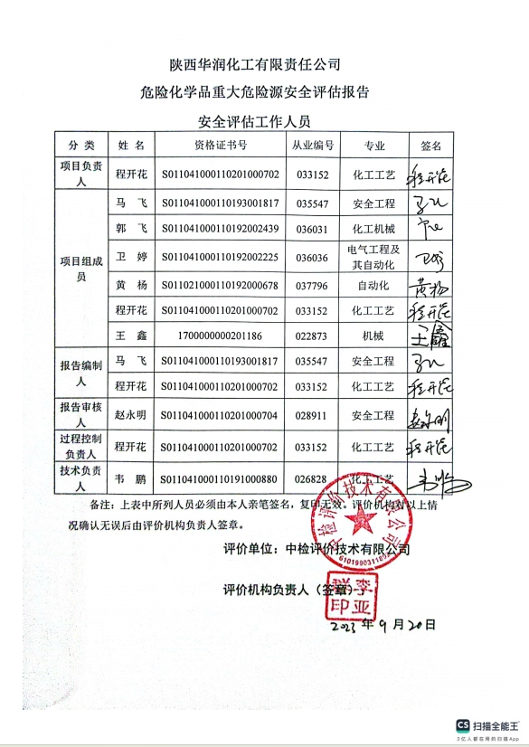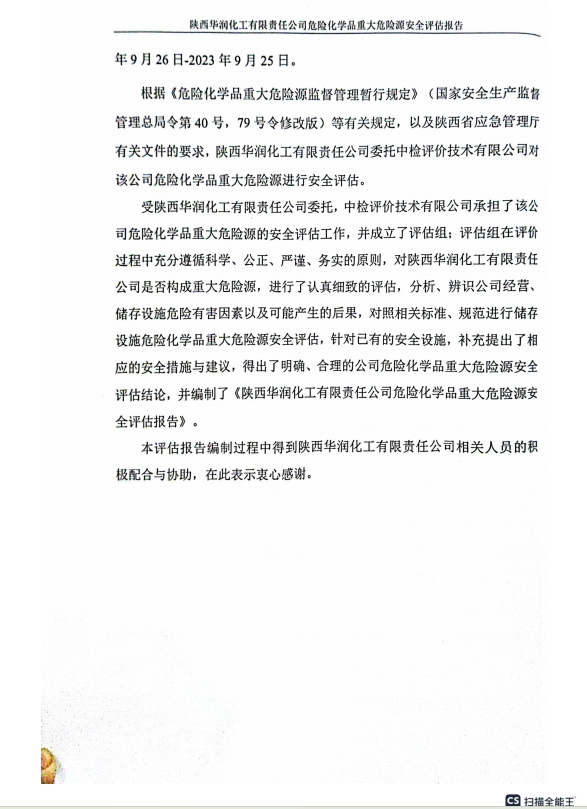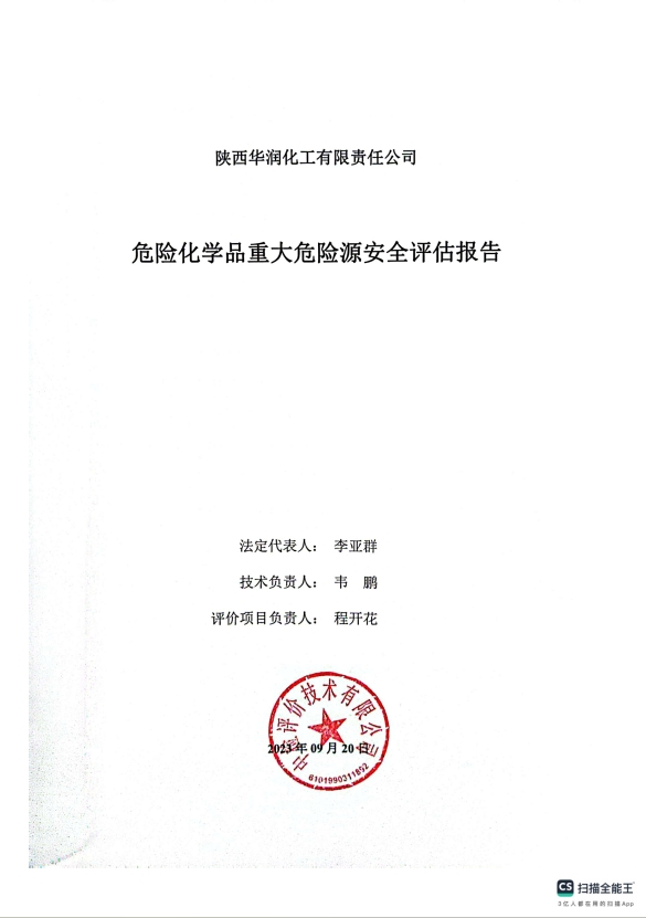 陜西華潤化工有限責任公司危險化學品重大危險源安全評估