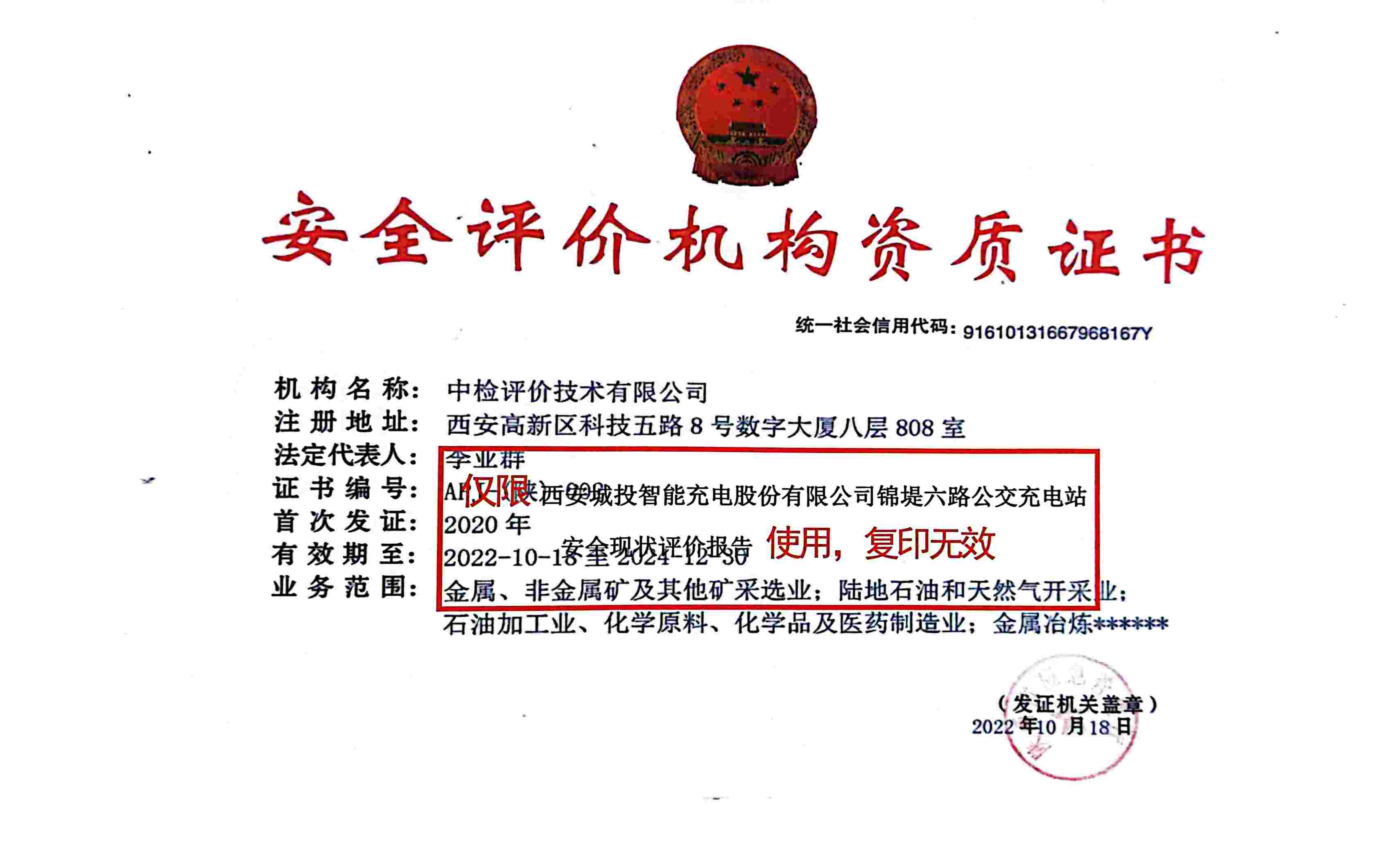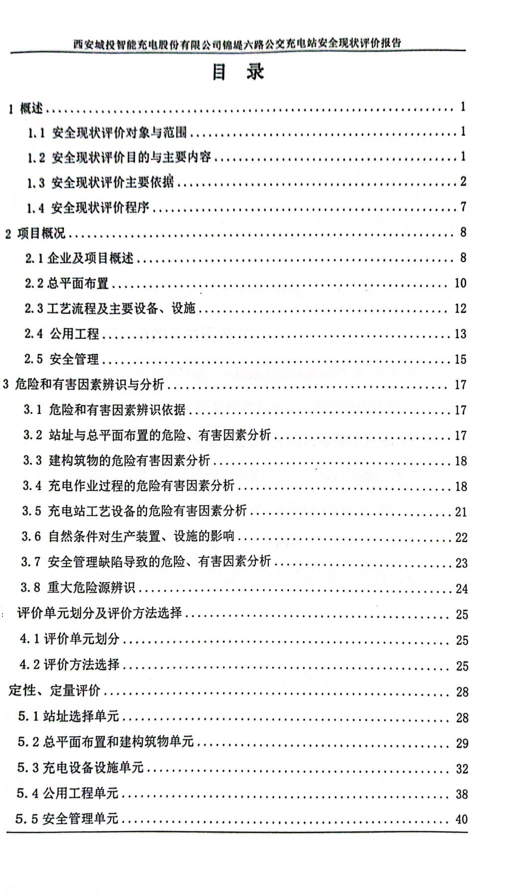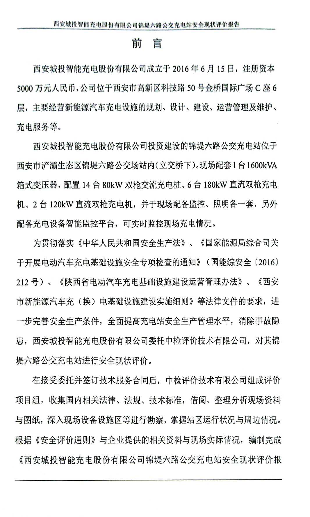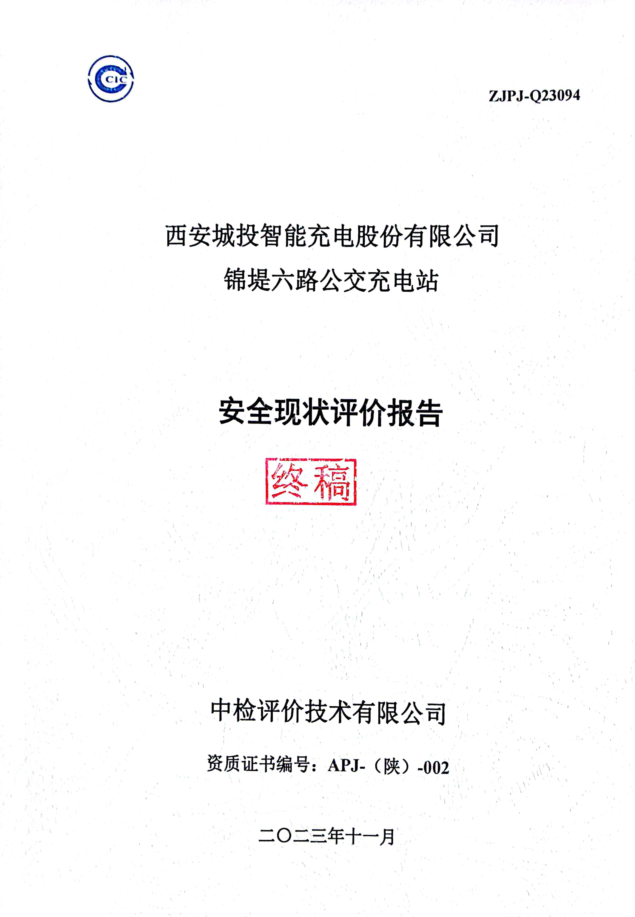 西安城投智能充電股份有限公司錦堤六路公交充電站安全現(xiàn)狀評(píng)價(jià)