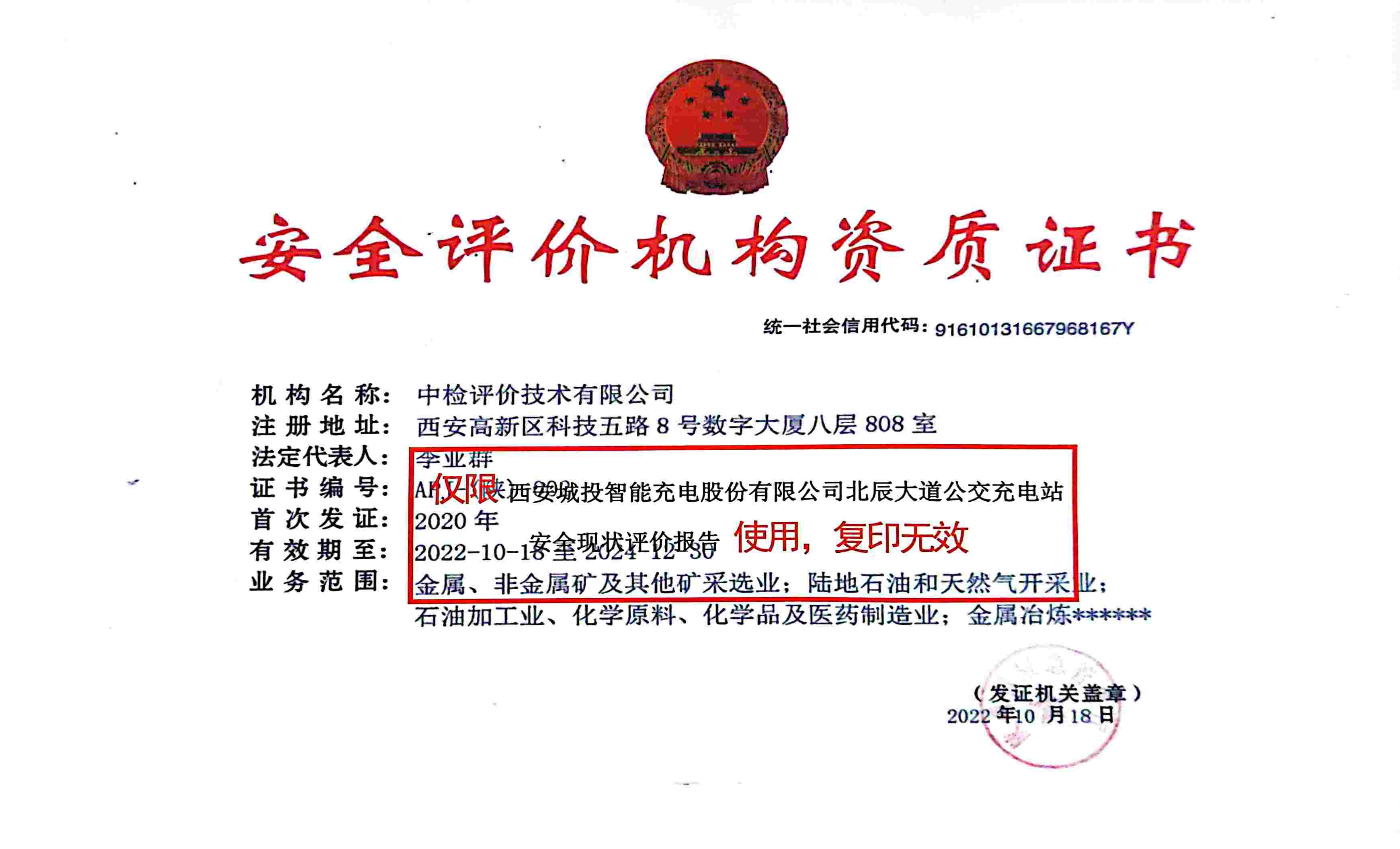 項(xiàng)目名稱 | 西安城投智能充電股份有限公司北辰大道公交充電站安全現(xiàn)狀評(píng)價(jià) | ||||||