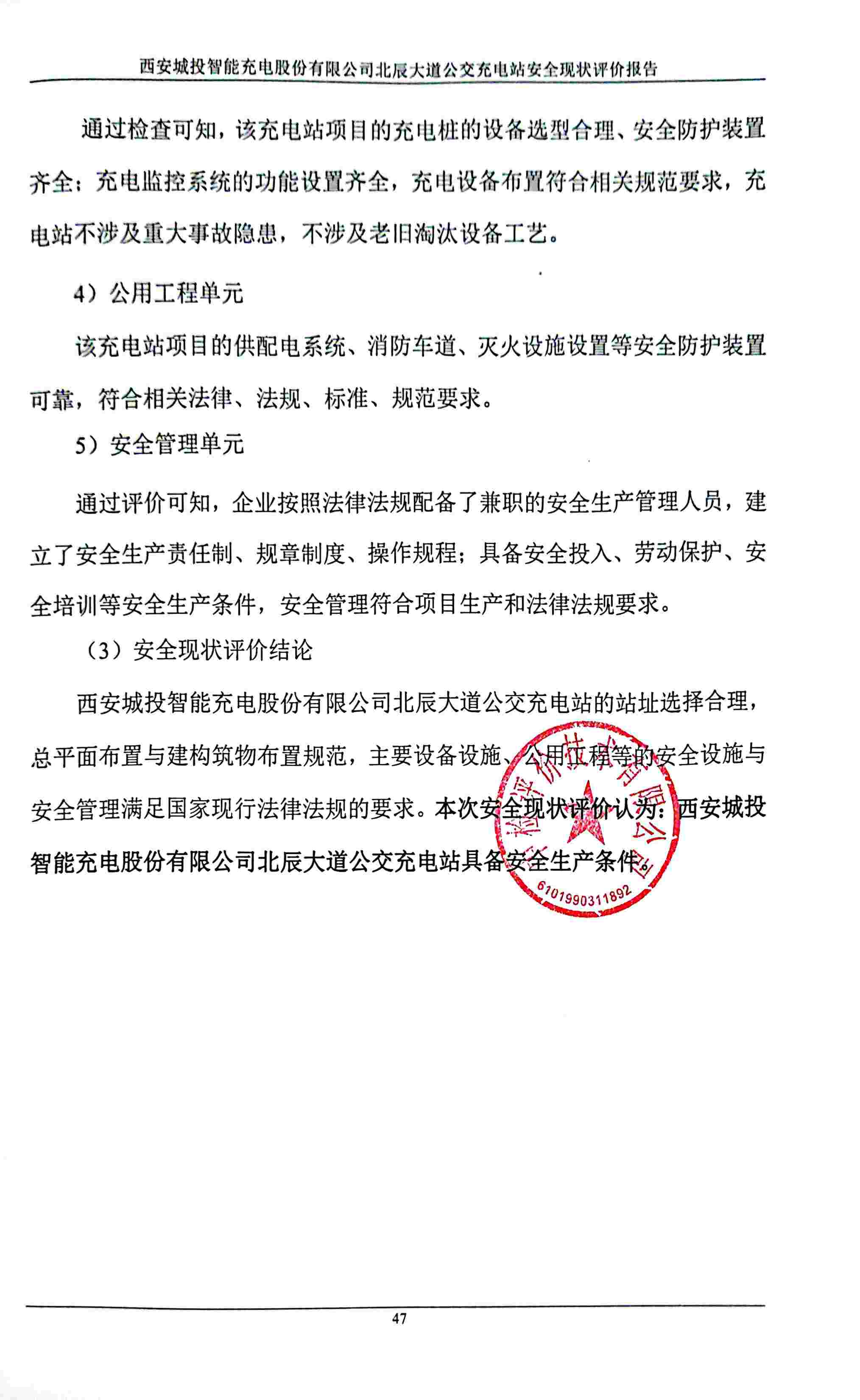 西安城投智能充電股份有限公司北辰大道公交充電站安全現(xiàn)狀評(píng)價(jià)