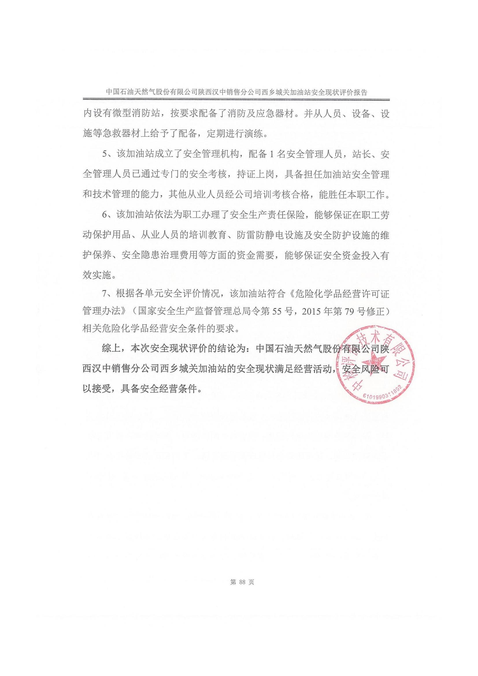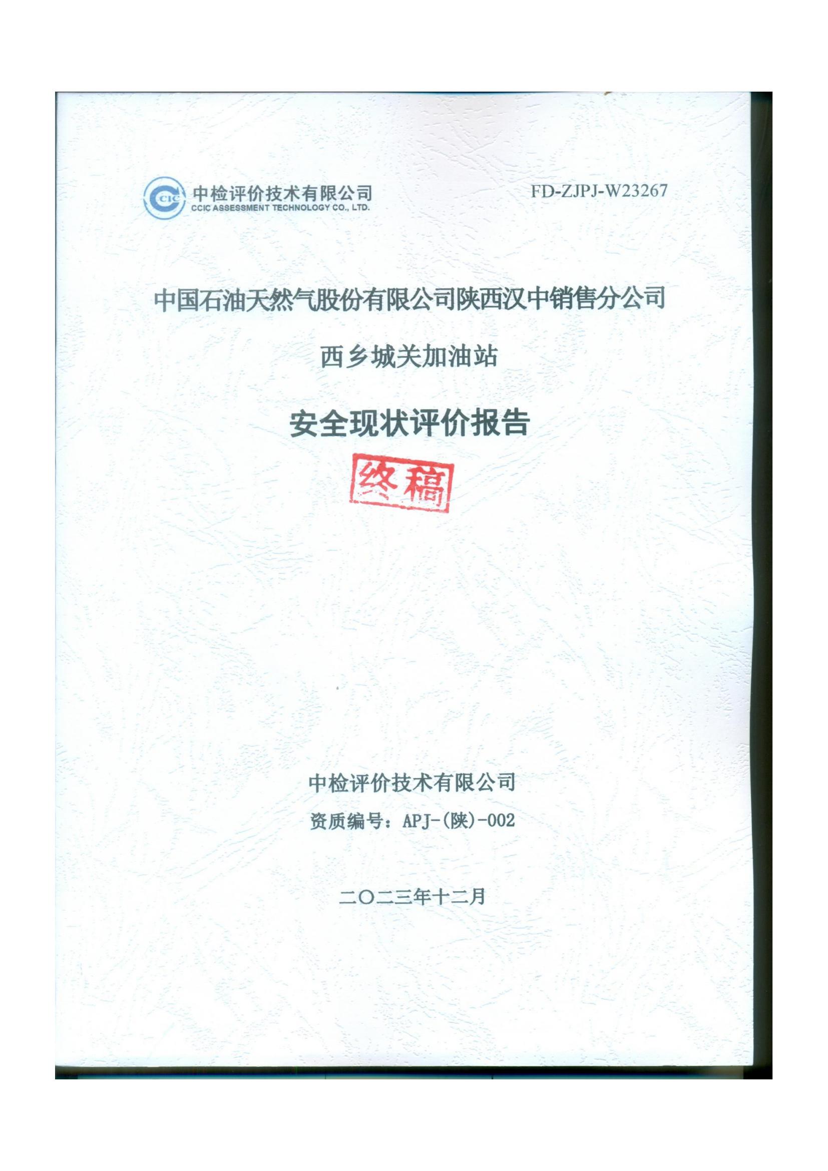 中國石油天然氣股份有限公司陜西漢中銷售分公司西鄉(xiāng)城關(guān)加油站安全現(xiàn)狀評價報告