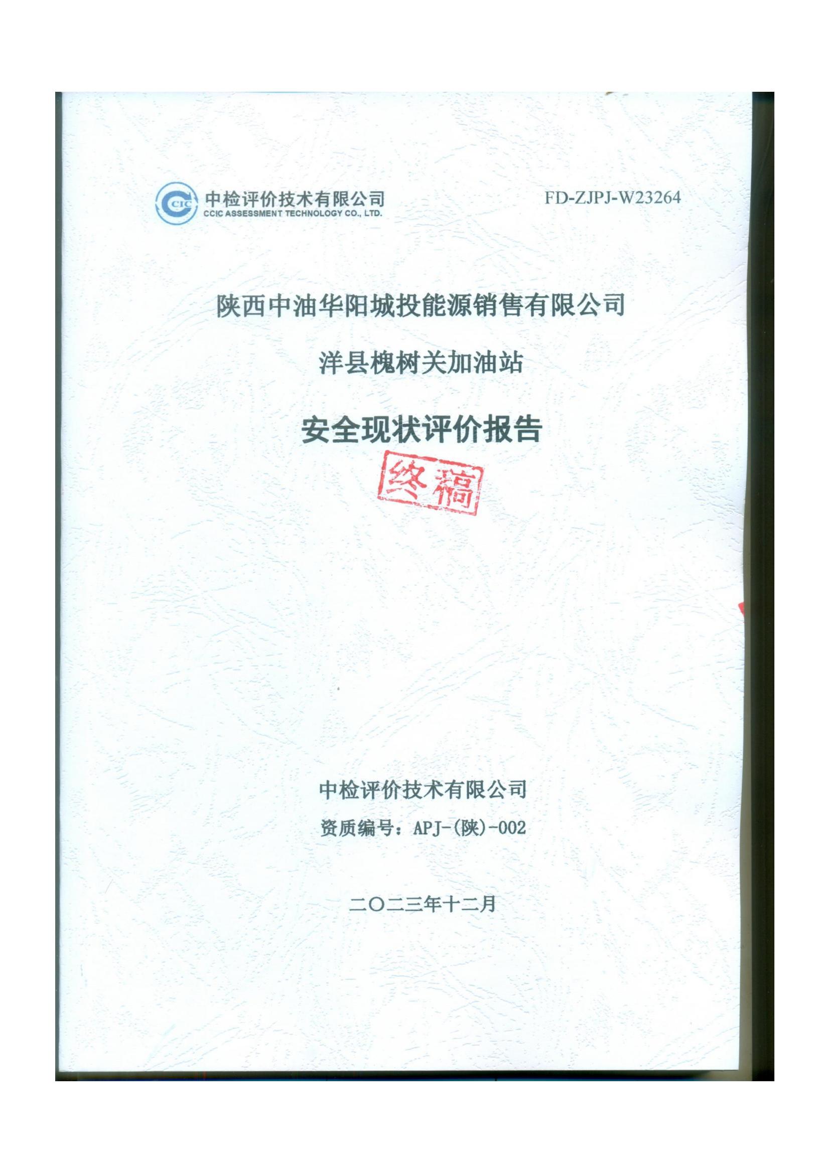 陜西中油華陽城投能源銷售有限公司洋縣槐樹關加油站安全現(xiàn)狀評價報告