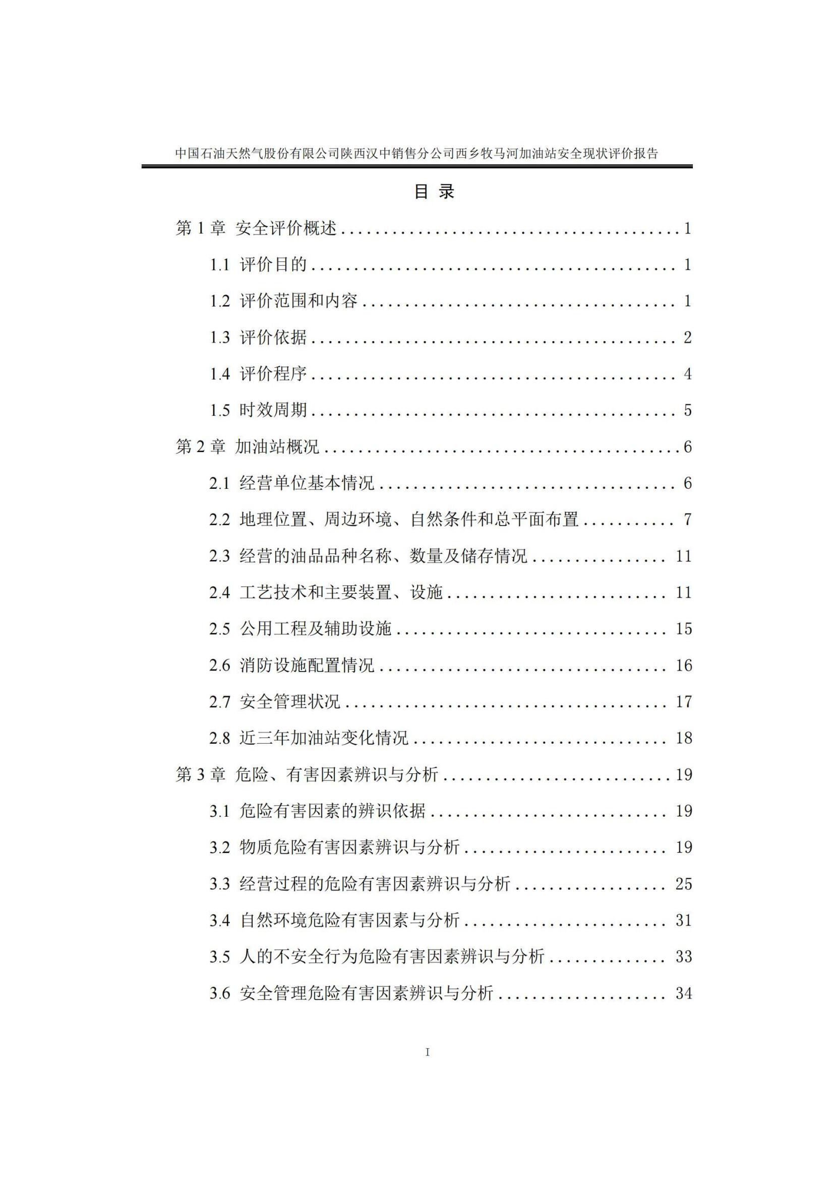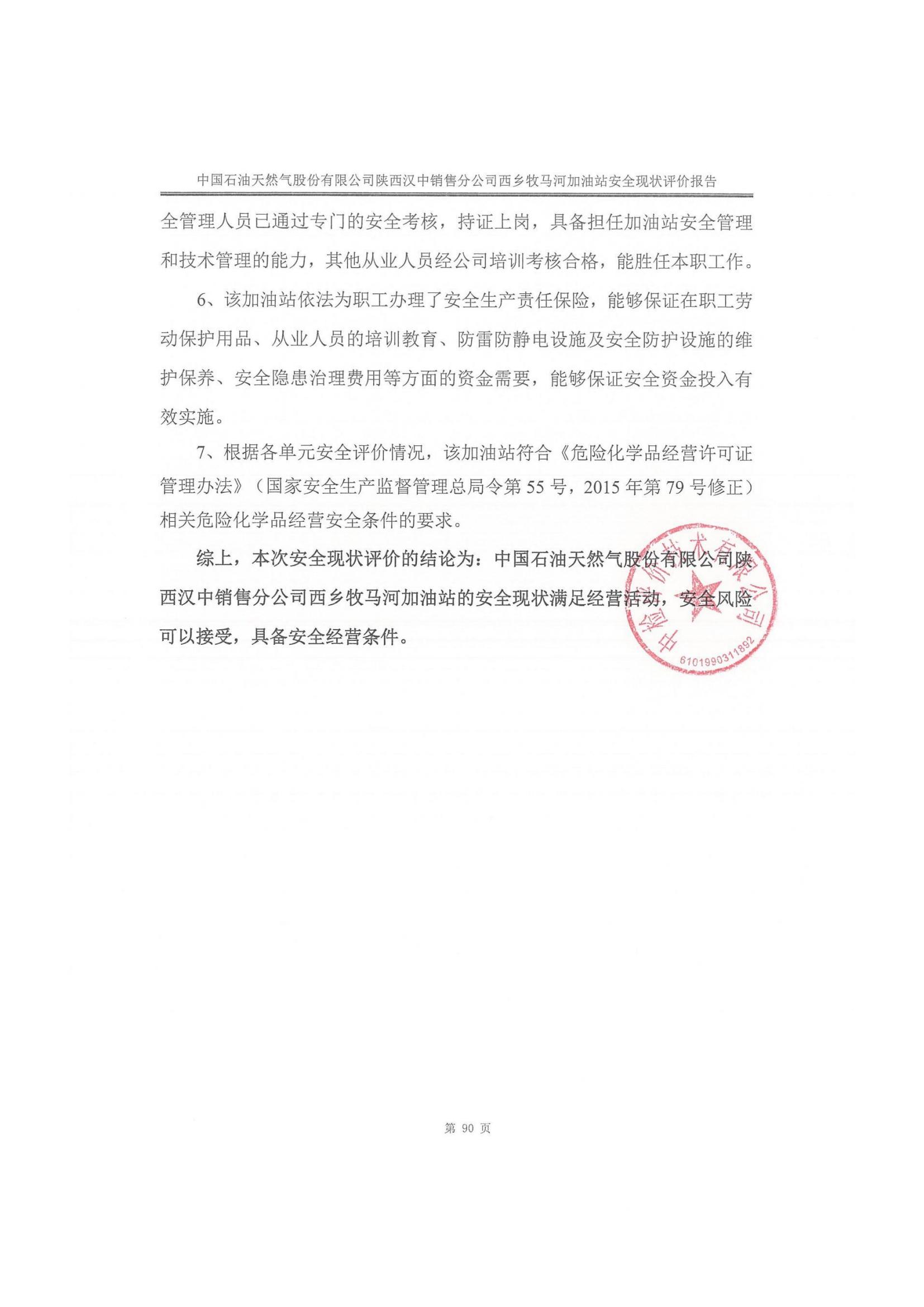 中國(guó)石油天然氣股份有限公司陜西漢中銷售分公司西鄉(xiāng)牧馬河加油站安全現(xiàn)狀評(píng)價(jià)報(bào)告
