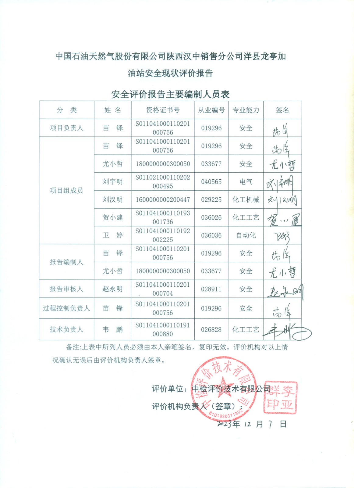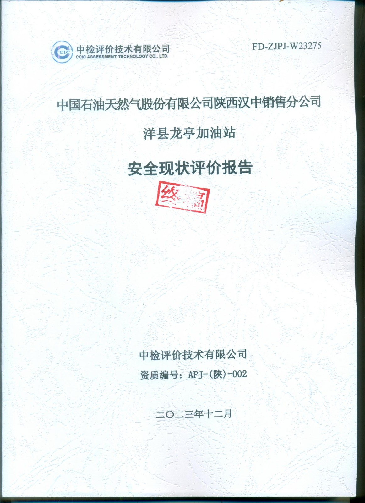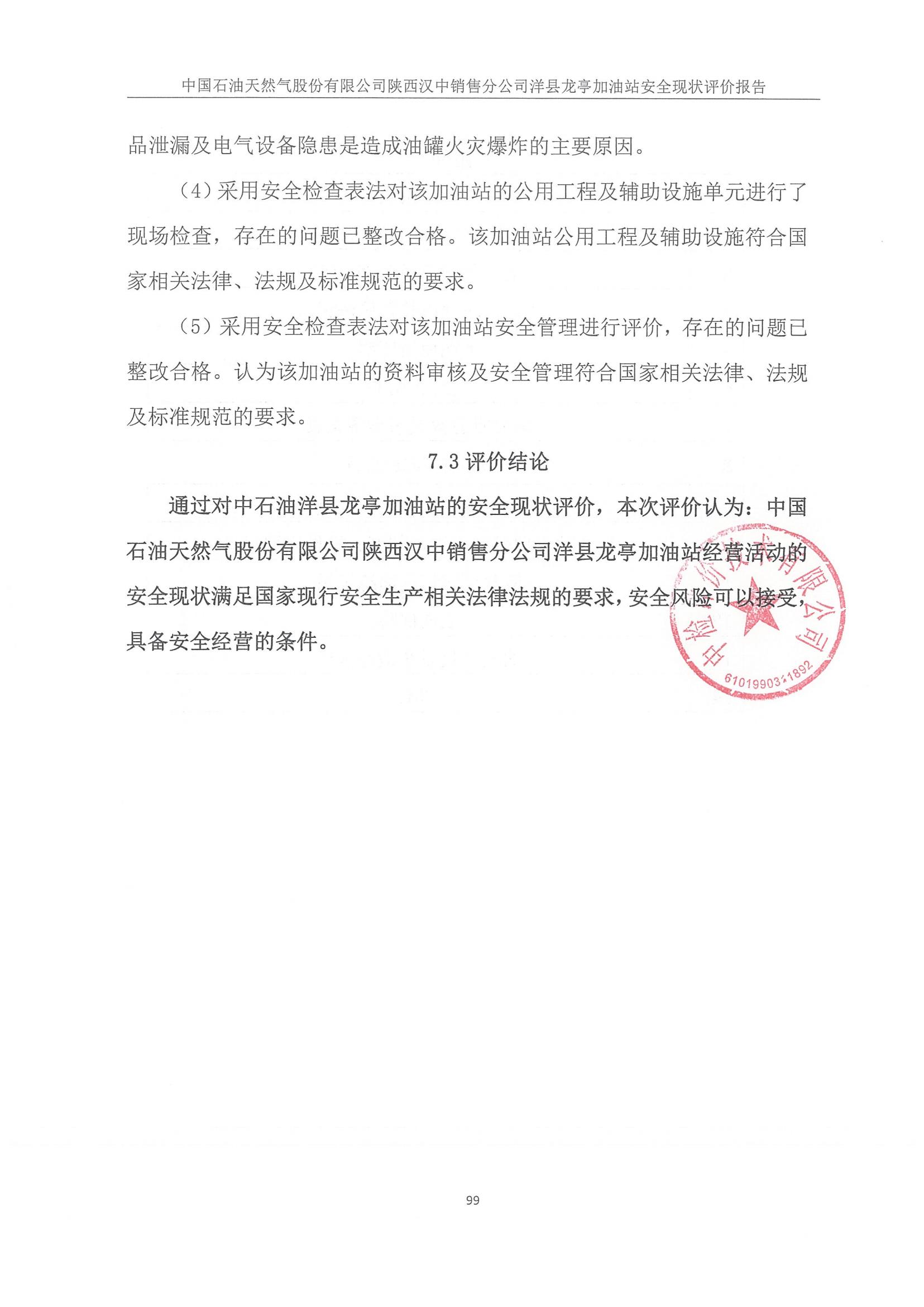 中國(guó)石油天然氣股份有限公司陜西漢中銷(xiāo)售分公司洋縣龍亭加油站安全現(xiàn)狀評(píng)價(jià)報(bào)告