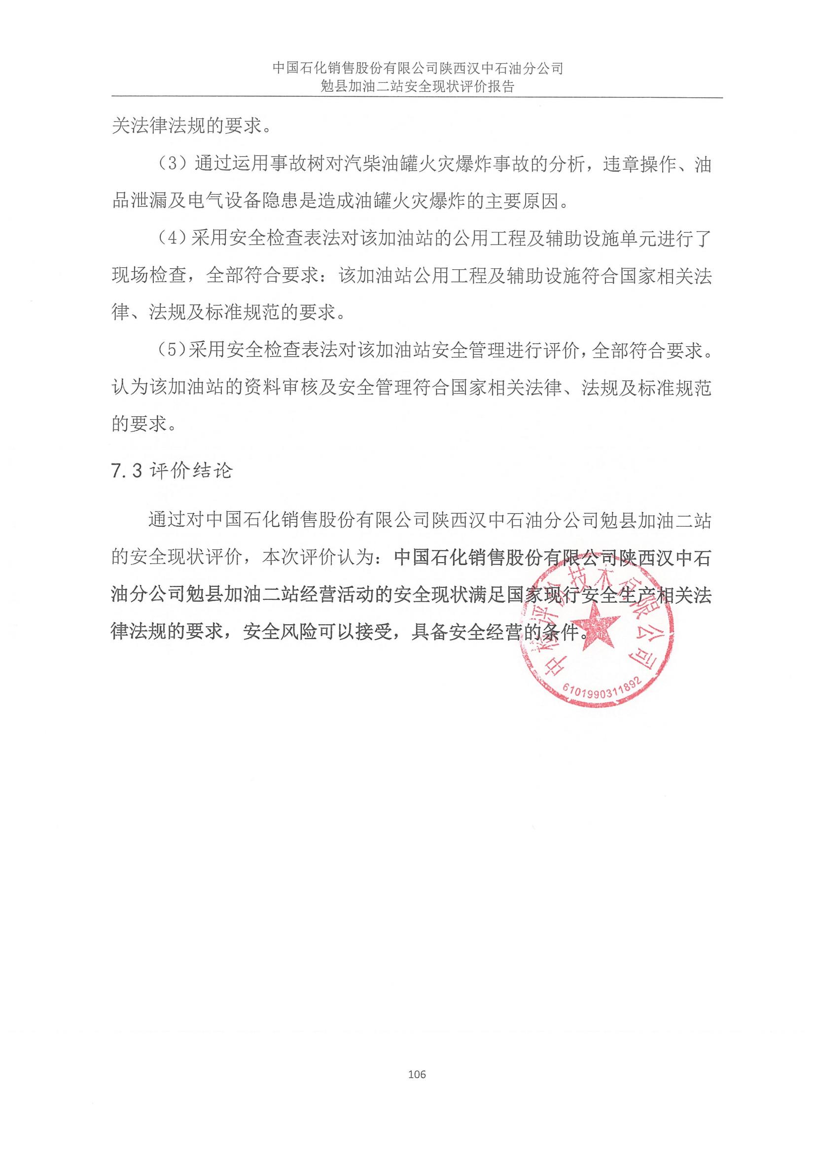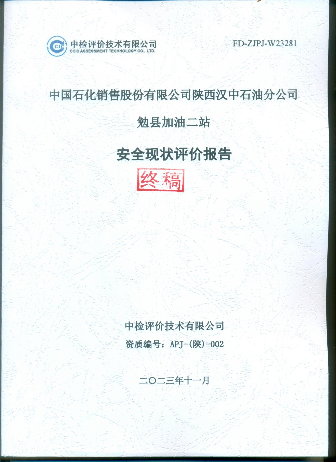 中國石化銷售股份有限公司陜西漢中石油分公司勉縣加油二站安全現(xiàn)狀評價報告