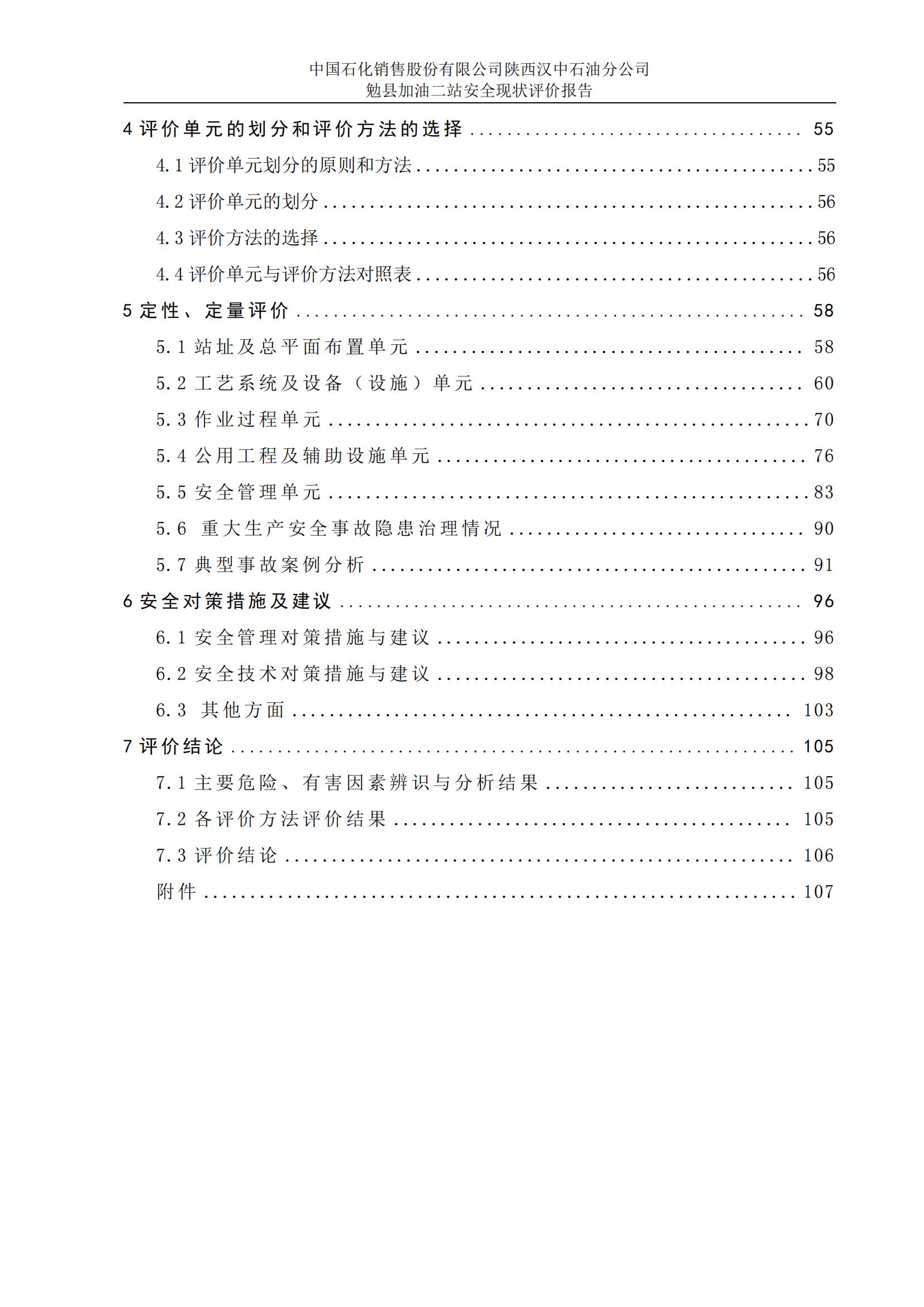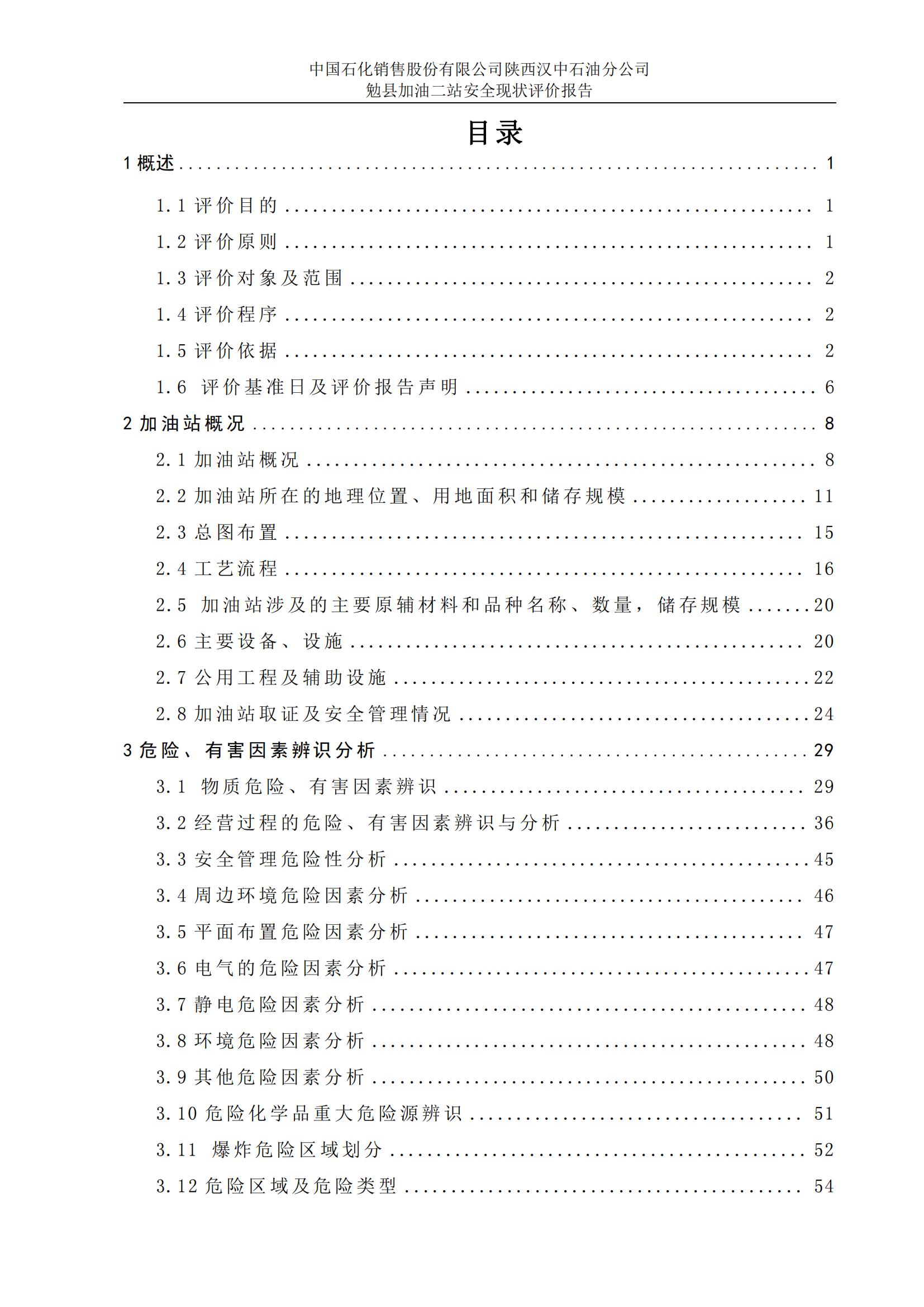 項目名稱 | 中國石化銷售股份有限公司陜西漢中石油分公司 勉縣加油二站安全現(xiàn)狀評價報告 | ||||||