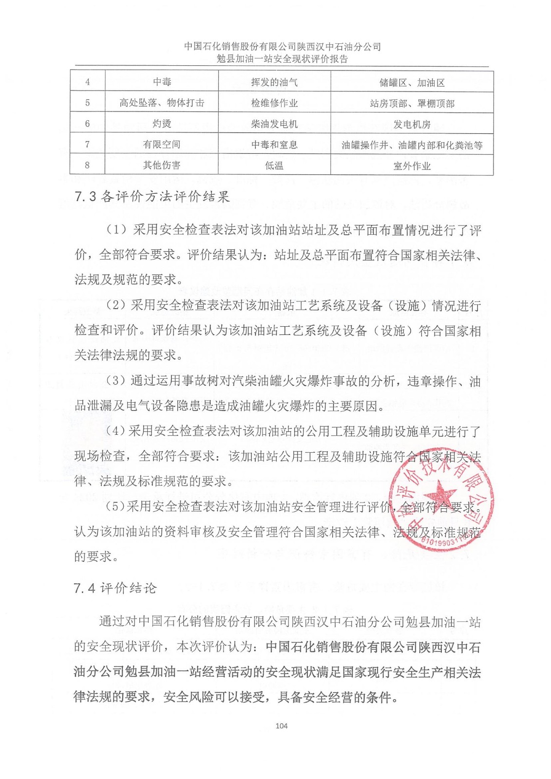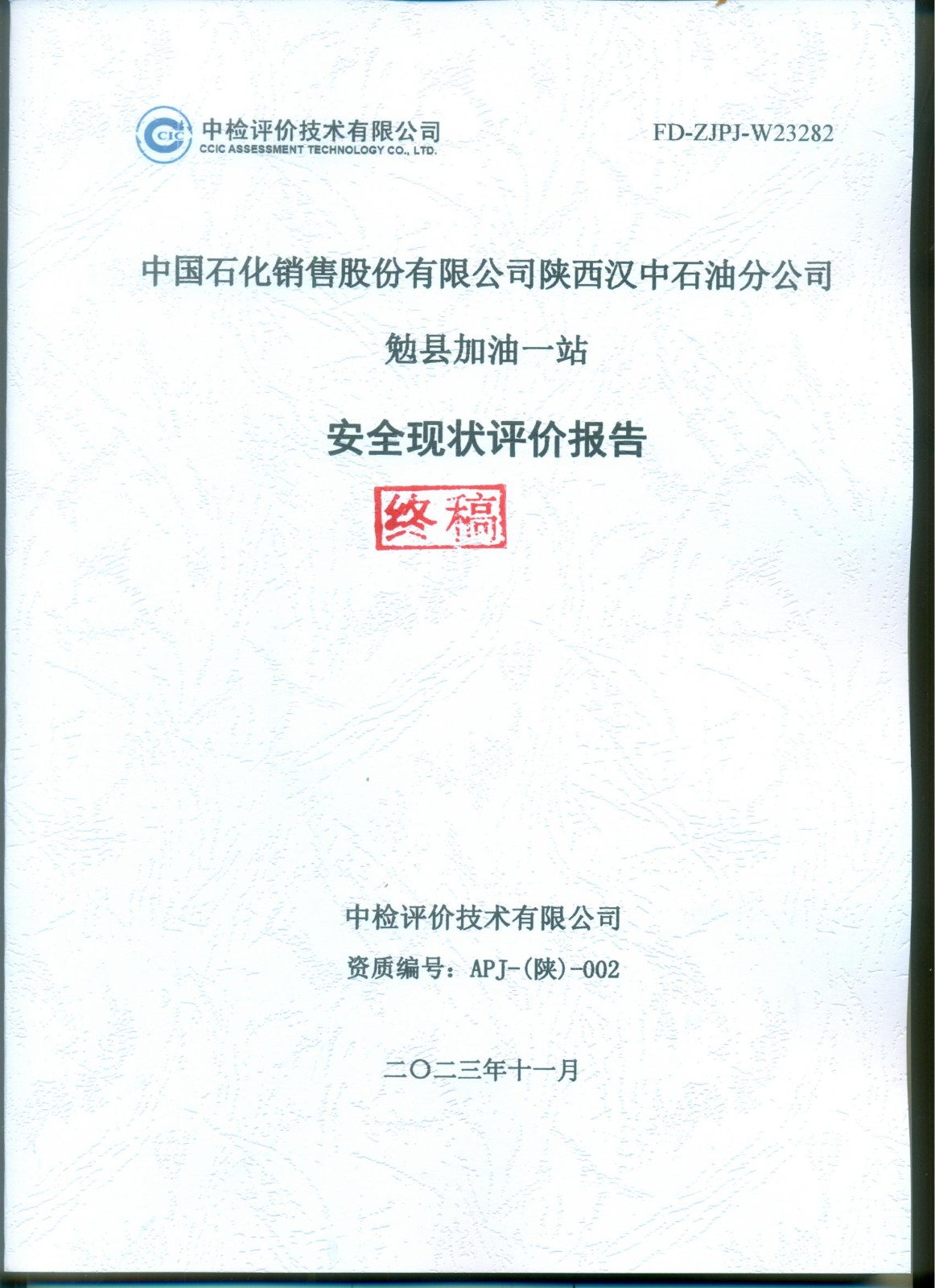 項目名稱 | 中國石化銷售股份有限公司陜西漢中石油分公司 勉縣加油一站安全現(xiàn)狀評價報告 | ||||||