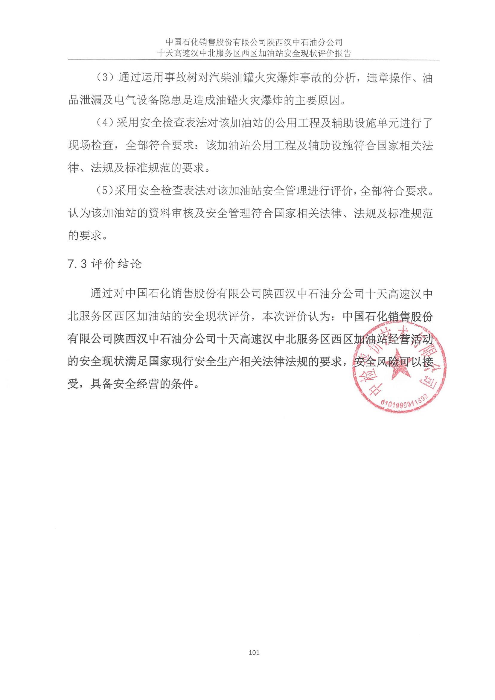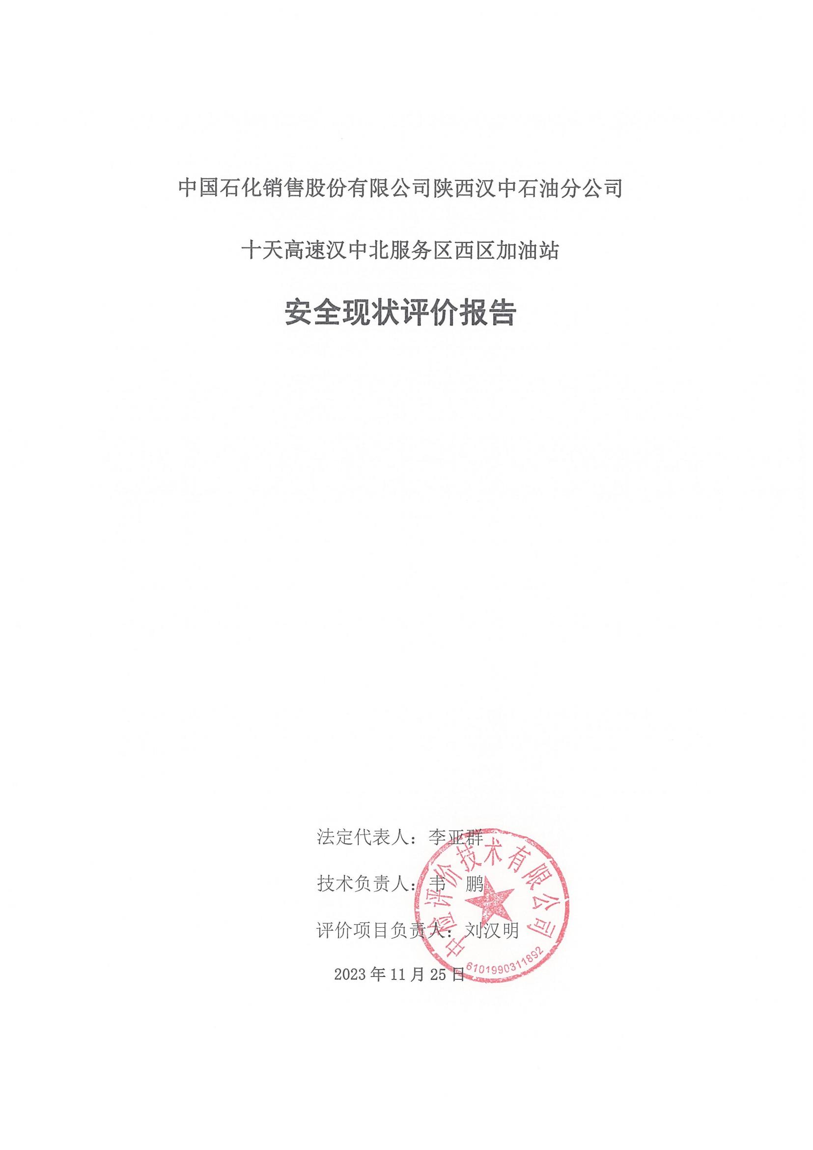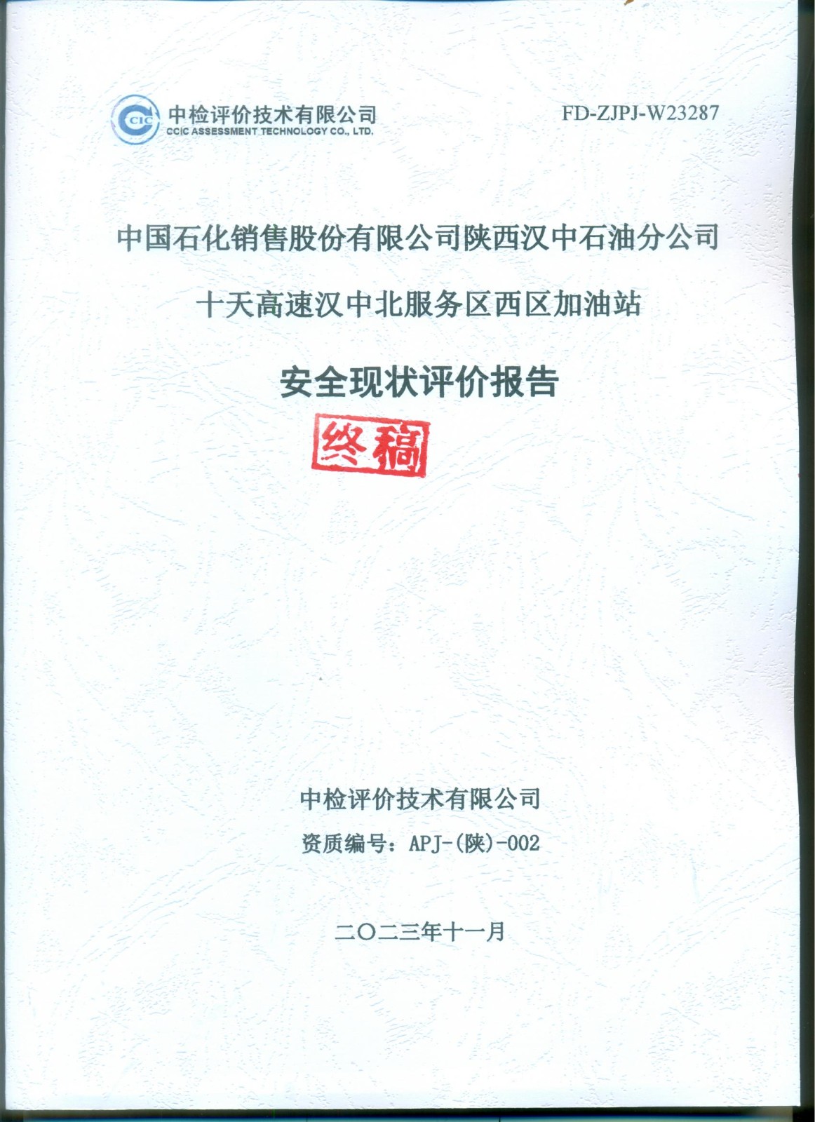 中國(guó)石化銷售股份有限公司陜西漢中石油分公司十天高速漢中北服務(wù)區(qū)西區(qū)加油站安全現(xiàn)狀評(píng)價(jià)報(bào)告