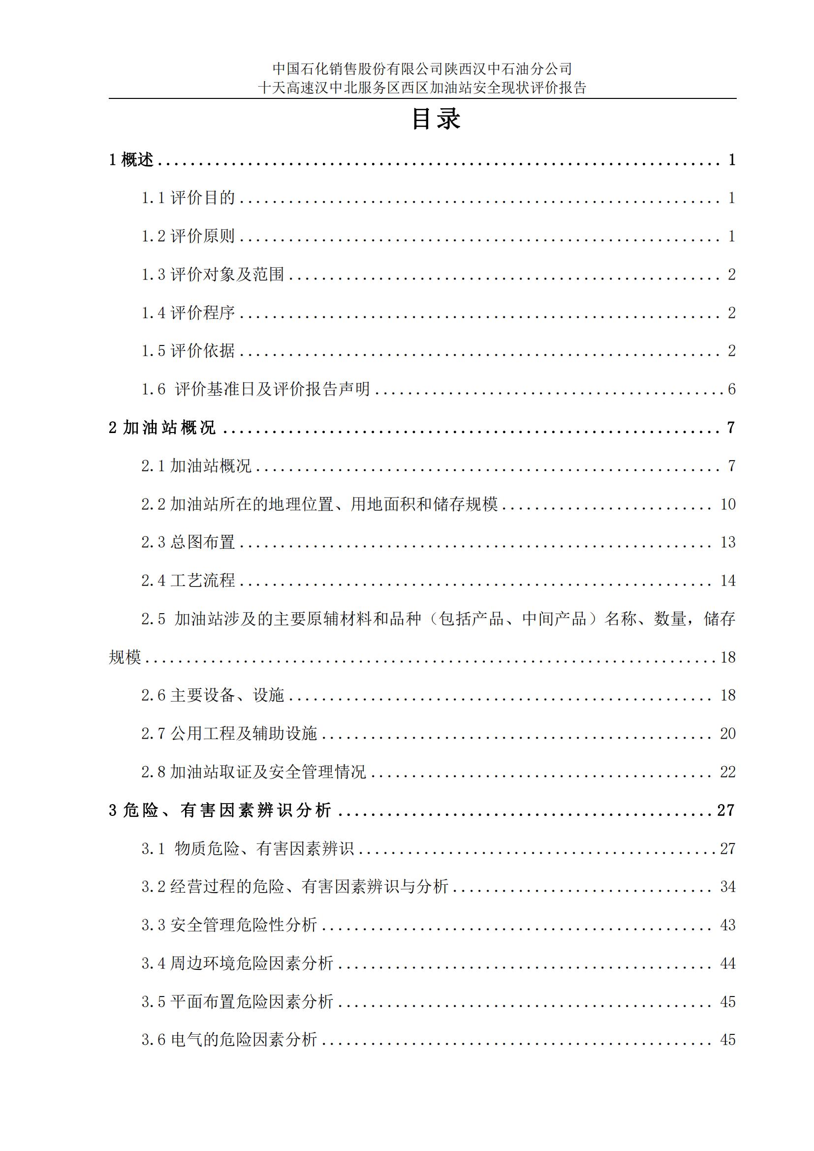 項(xiàng)目名稱 | 中國(guó)石化銷售股份有限公司陜西漢中石油分公司 十天高速漢中北服務(wù)區(qū)西區(qū)加油站安全現(xiàn)狀評(píng)價(jià)報(bào)告 | ||||||