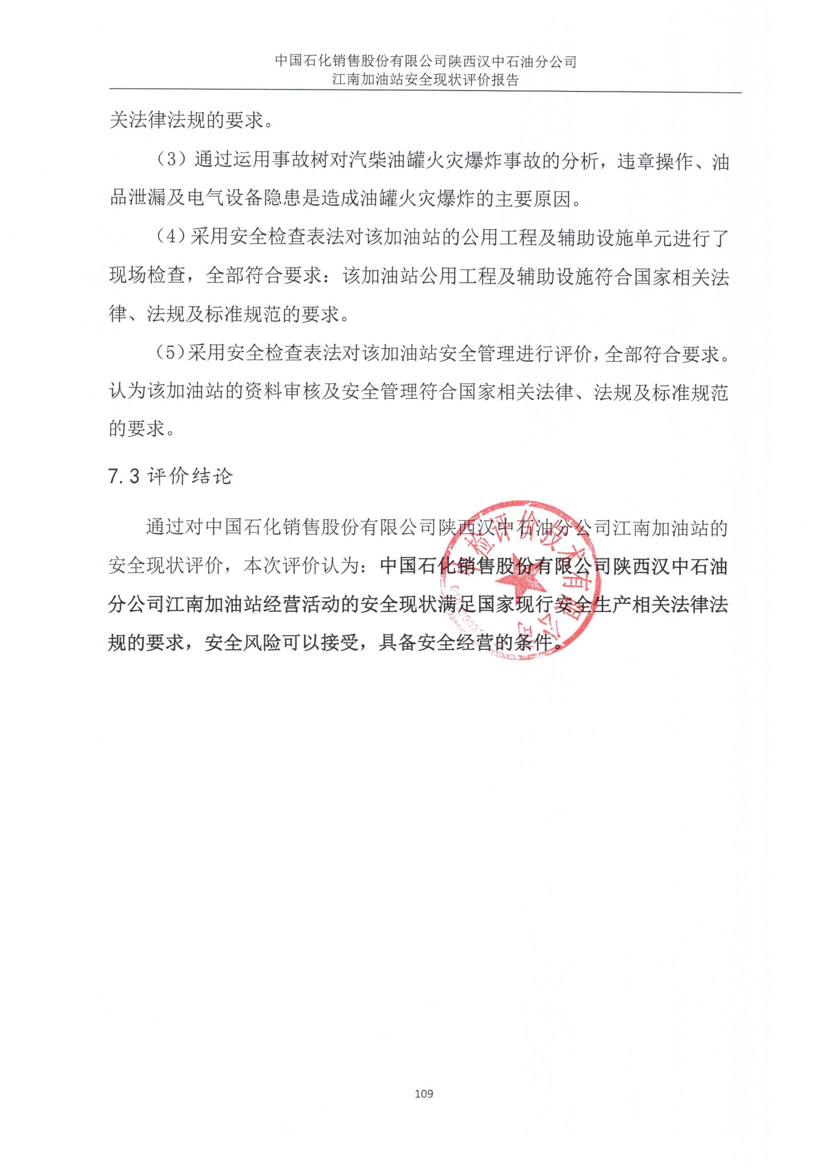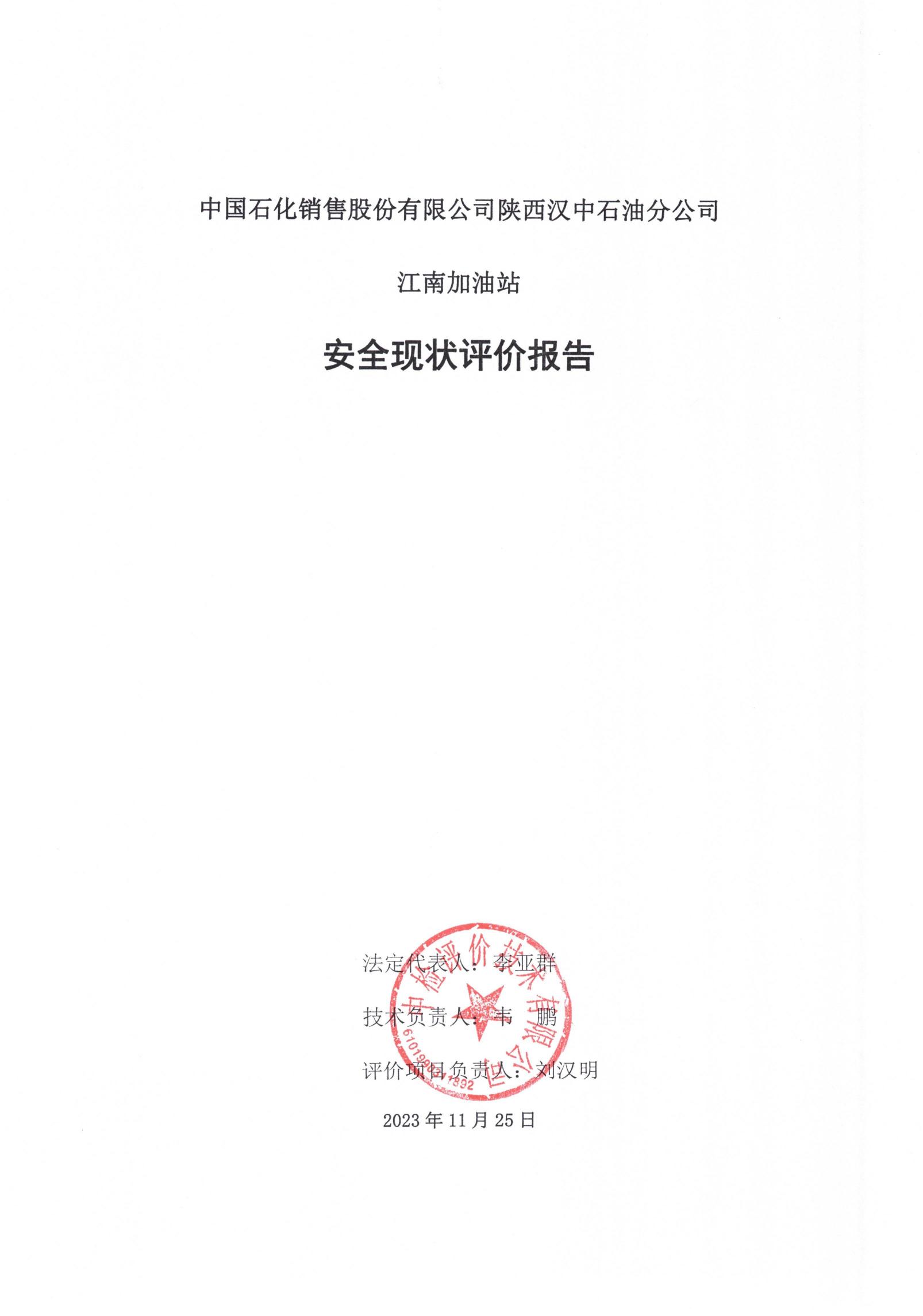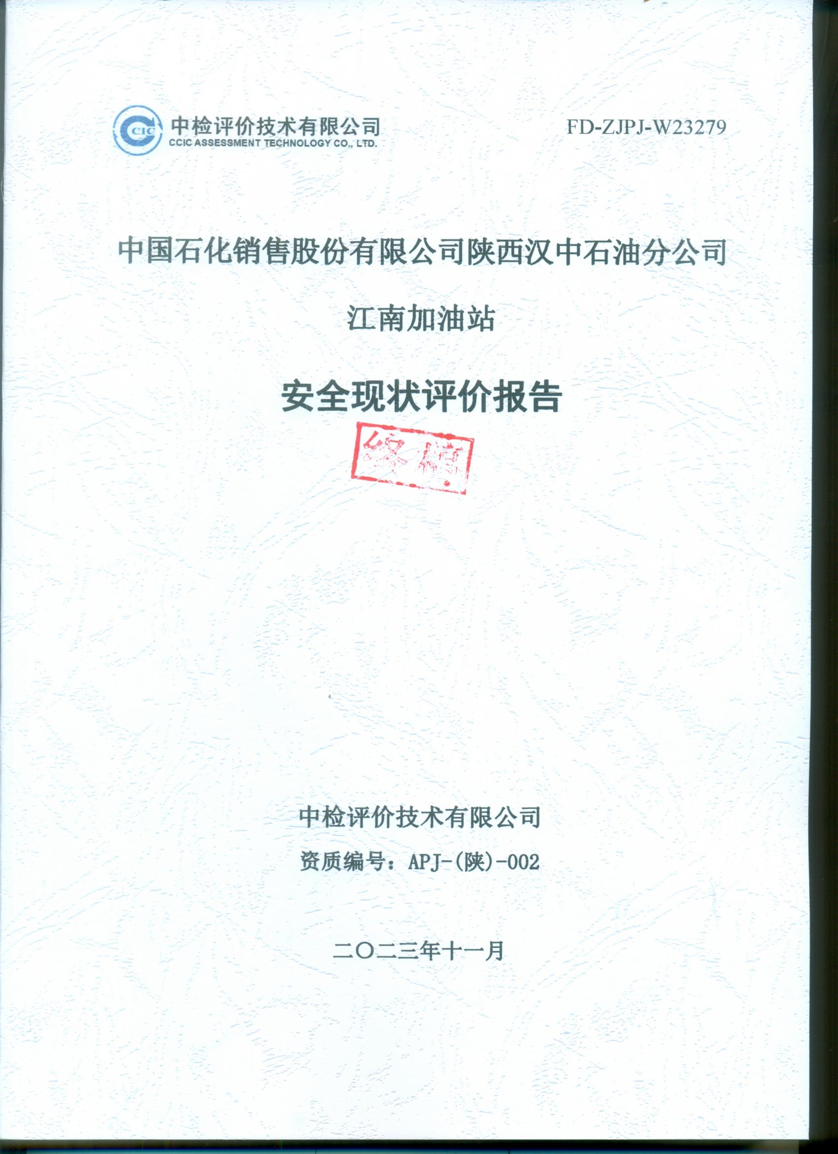 中國石化銷售股份有限公司陜西漢中石油分公司江南加油站安全現(xiàn)狀評價報告