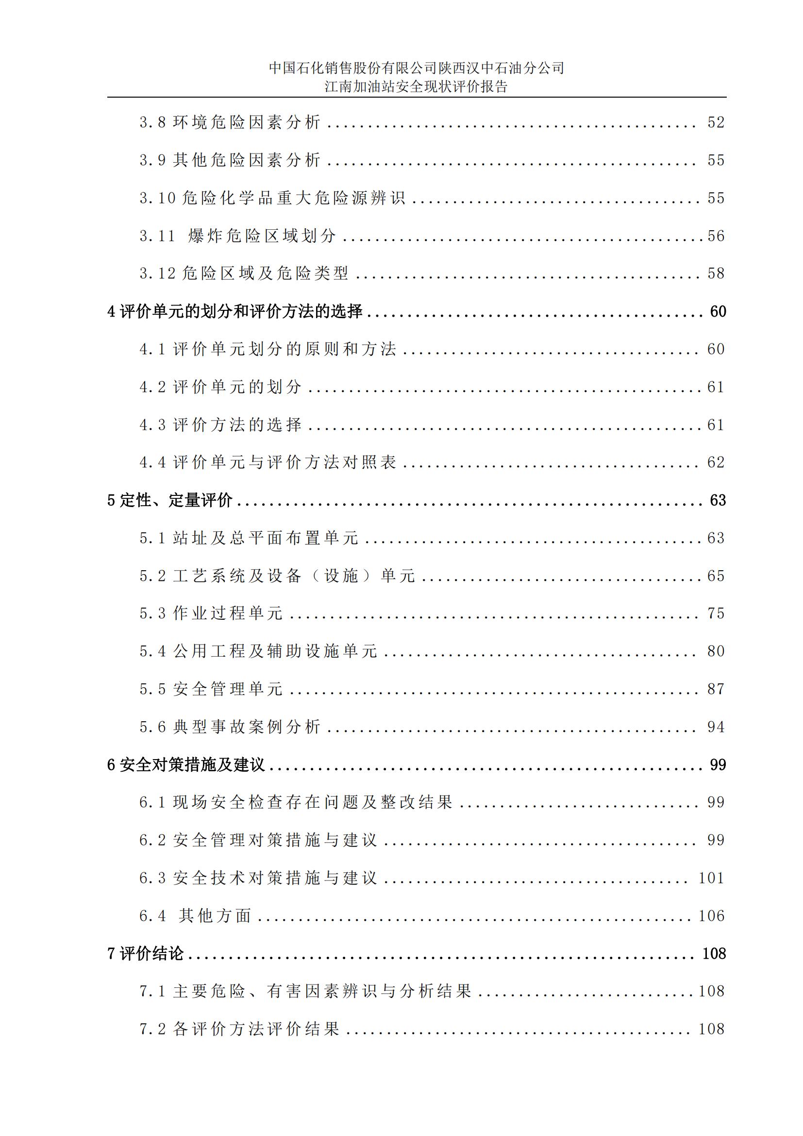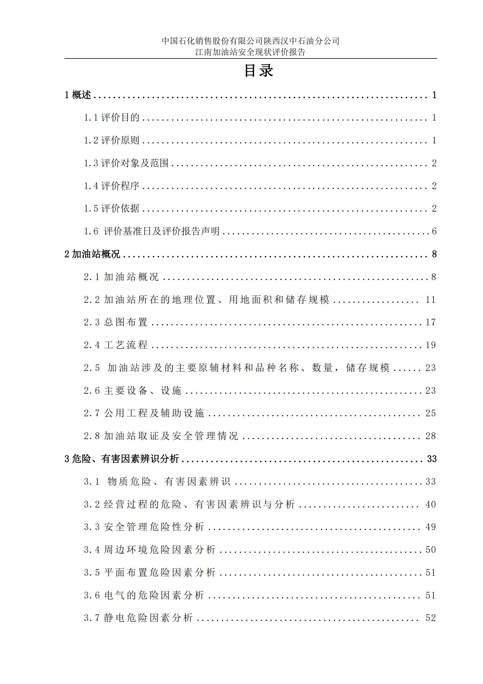 項目名稱 | 中國石化銷售股份有限公司陜西漢中石油分公司 江南加油站安全現(xiàn)狀評價報告 | ||||||