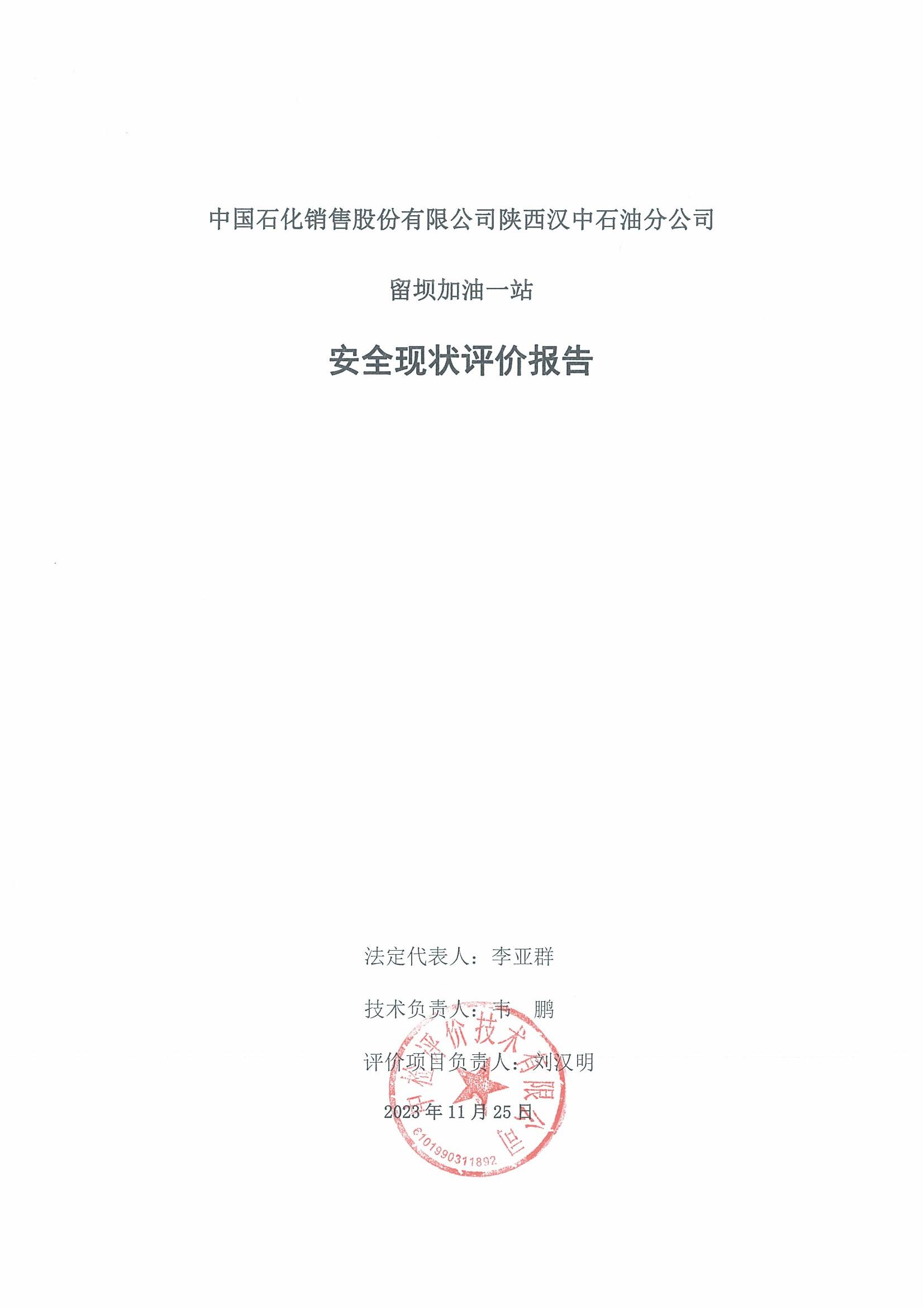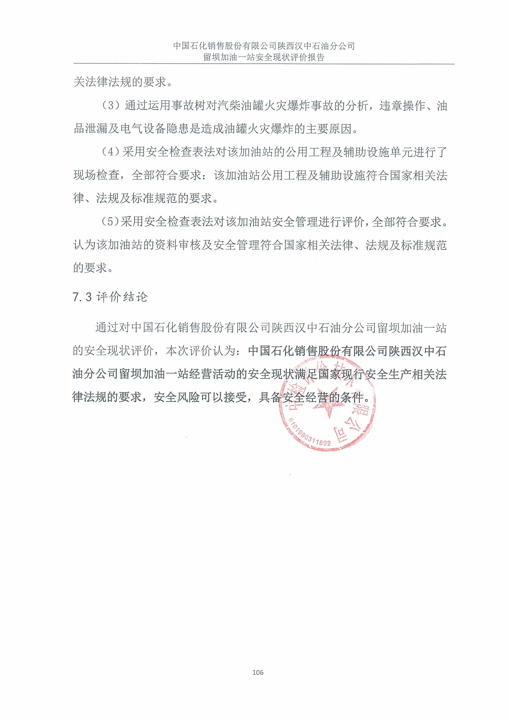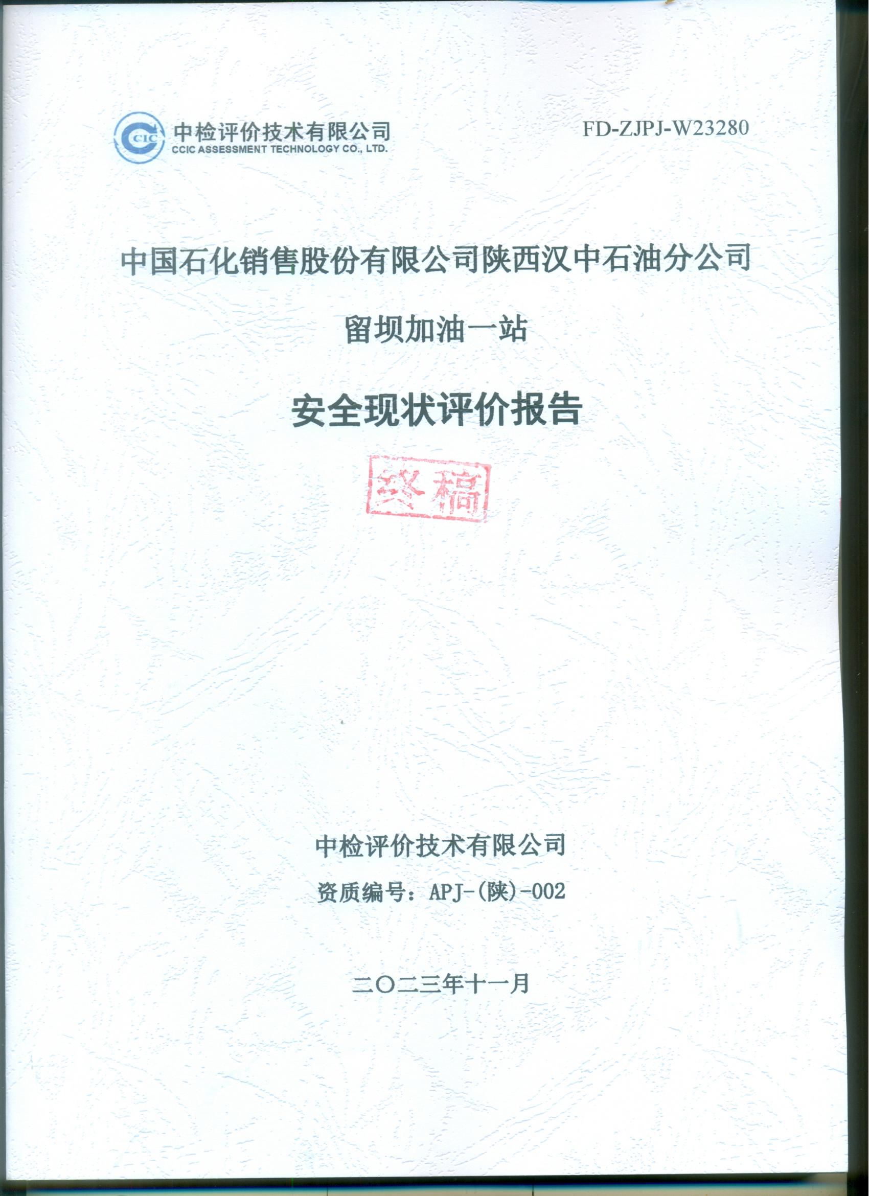 中國石化銷售股份有限公司陜西漢中石油分公司留壩加油一站安全現(xiàn)狀評(píng)價(jià)報(bào)告