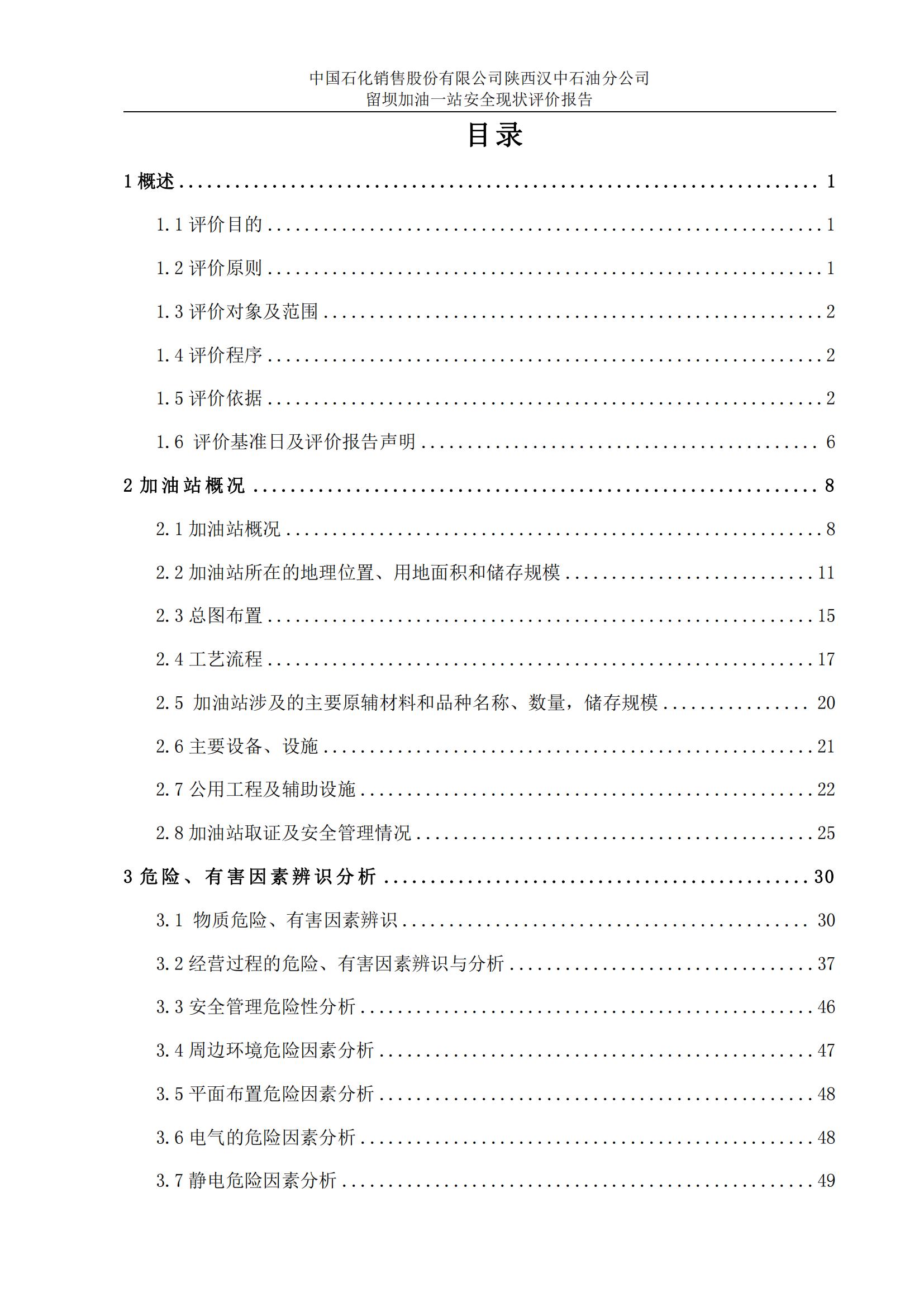 項(xiàng)目名稱 | 中國石化銷售股份有限公司陜西漢中石油分公司 留壩加油一站安全現(xiàn)狀評(píng)價(jià)報(bào)告 | ||||||