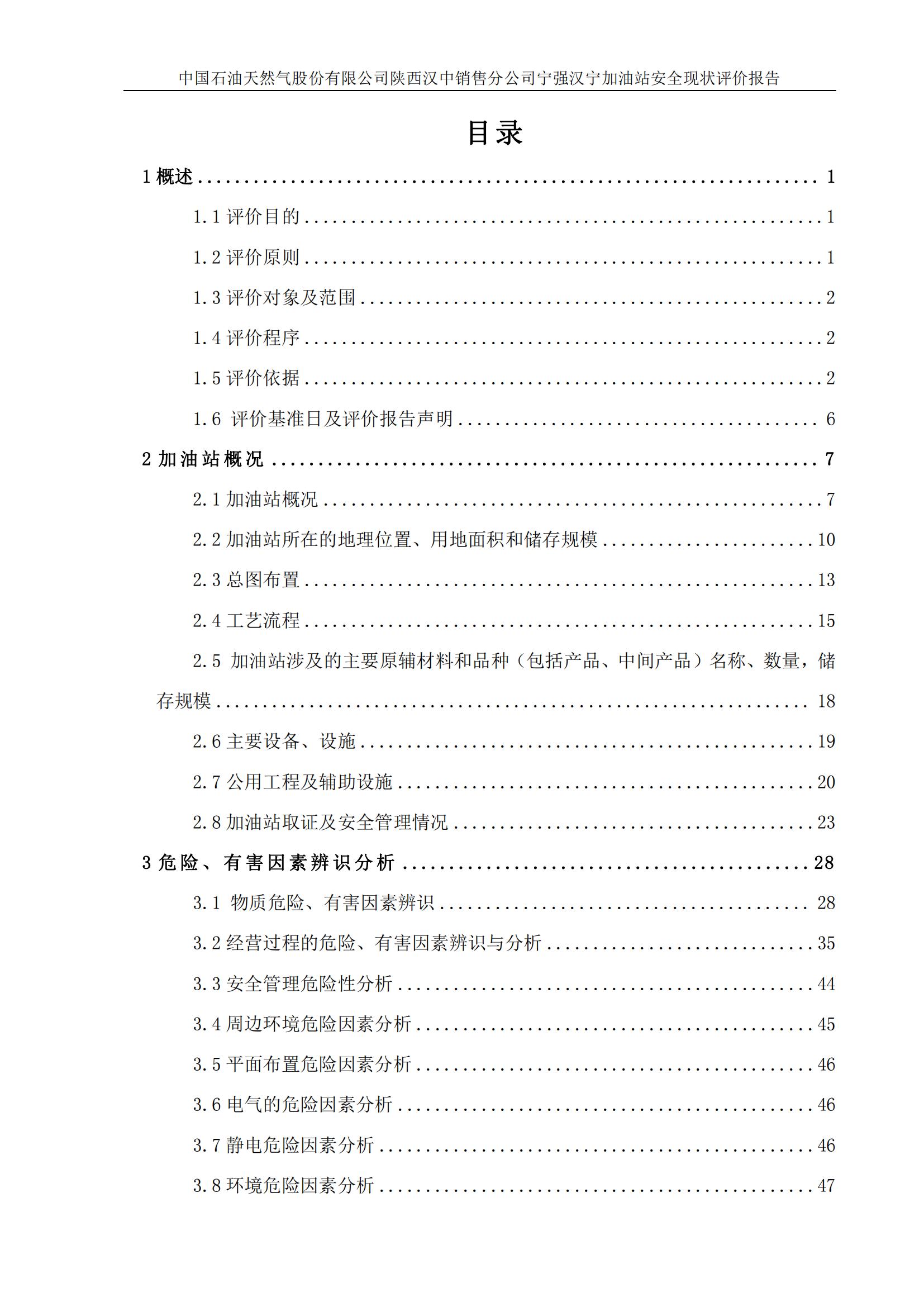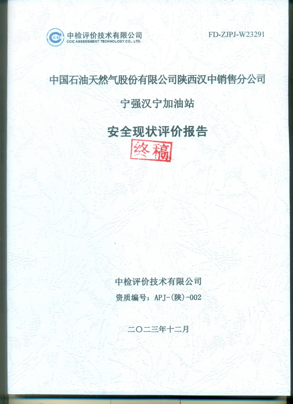 中國石油天然氣股份有限公司陜西漢中銷售分公司寧強漢寧加油站安全現(xiàn)狀評價報告