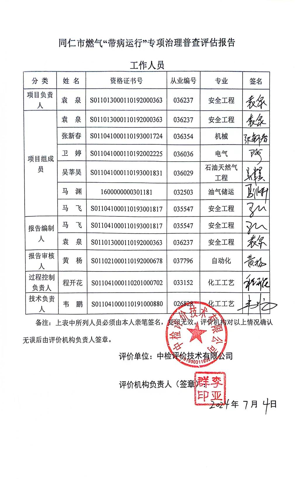 項(xiàng)目簡(jiǎn)介 | 根據(jù)《關(guān)于報(bào)送燃?xì)夤艿?/span>“帶病運(yùn)行”專項(xiàng)治理普查評(píng)估報(bào)告的通知》(青燃安專辦【2024】93號(hào))、《全省城鎮(zhèn)燃?xì)獍踩珜m?xiàng)整治和燃?xì)夤艿馈皫Р∵\(yùn)行”專項(xiàng)治理工作要點(diǎn)》(青燃安專【2024】2號(hào))等文件要求,同仁市住房和城鄉(xiāng)建設(shè)局委托中檢評(píng)價(jià)技術(shù)有限公司開展城鎮(zhèn)燃?xì)狻皫Р∵\(yùn)行”專項(xiàng)治理普查評(píng)估工作,我公司接受委托后,成立安全評(píng)估工作組,配置檢查設(shè)備儀器,組織工程技術(shù)人員深入現(xiàn)場(chǎng)實(shí)地勘查,按照國(guó)家規(guī)定的程序,遵循系統(tǒng)安全的原理,運(yùn)用科學(xué)的評(píng)估方法,本著實(shí)事求是、科學(xué)客觀的原則,進(jìn)行安全風(fēng)險(xiǎn)評(píng)估,依據(jù)《城鎮(zhèn)燃?xì)夤芾項(xiàng)l例》(國(guó)務(wù)院令第583號(hào)發(fā)布,第666號(hào)令修訂)、《安全評(píng)價(jià)通則》(AQ8001-2007)、《城鎮(zhèn)燃?xì)庠O(shè)計(jì)規(guī)范》GB50028-2006(2020年版)、《液化石油氣供應(yīng)工程設(shè)計(jì)規(guī)范》(GB 51142-2015)、《汽車加油加氣加氫站技術(shù)標(biāo)準(zhǔn)》(GB50156-2021)及國(guó)家有關(guān)法律、法規(guī)、部門規(guī)章、規(guī)范性文件、標(biāo)準(zhǔn)、規(guī)范的要求,最終編制完成《同仁市燃?xì)狻皫Р∵\(yùn)行”專項(xiàng)治理普查評(píng)估報(bào)告》。 | ||||||
