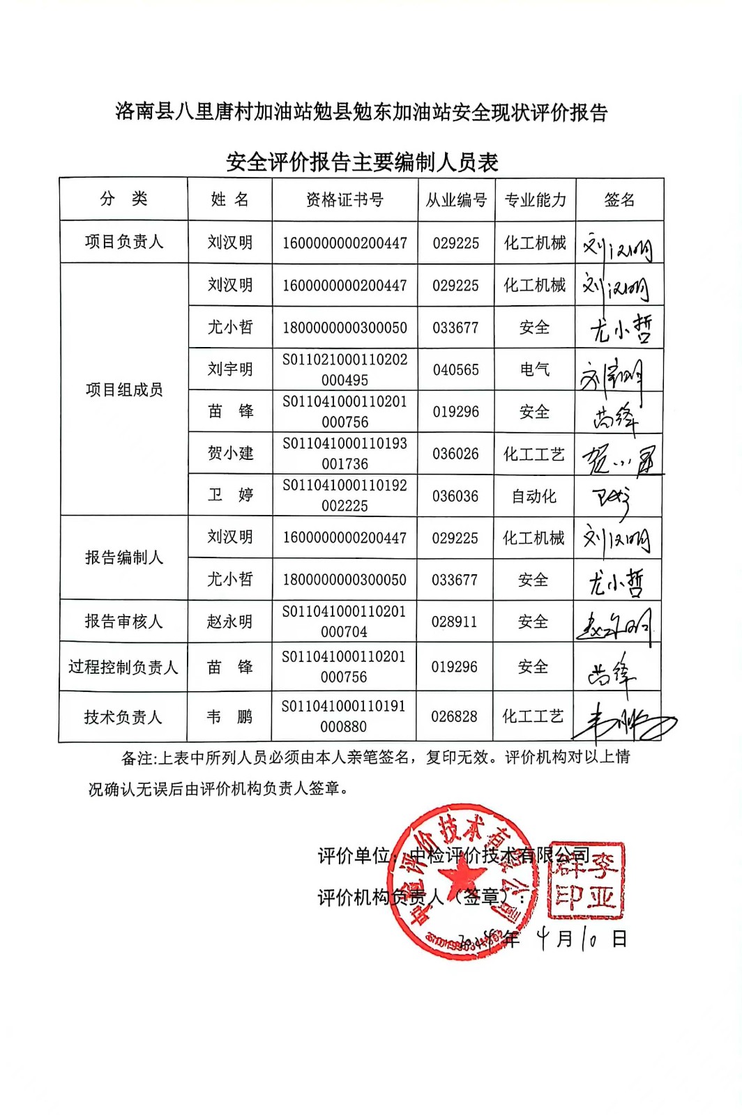 安全評價項目管理 | 項目組長 | 技術(shù)負責(zé)人 | 過程控制負責(zé)人 | ||||