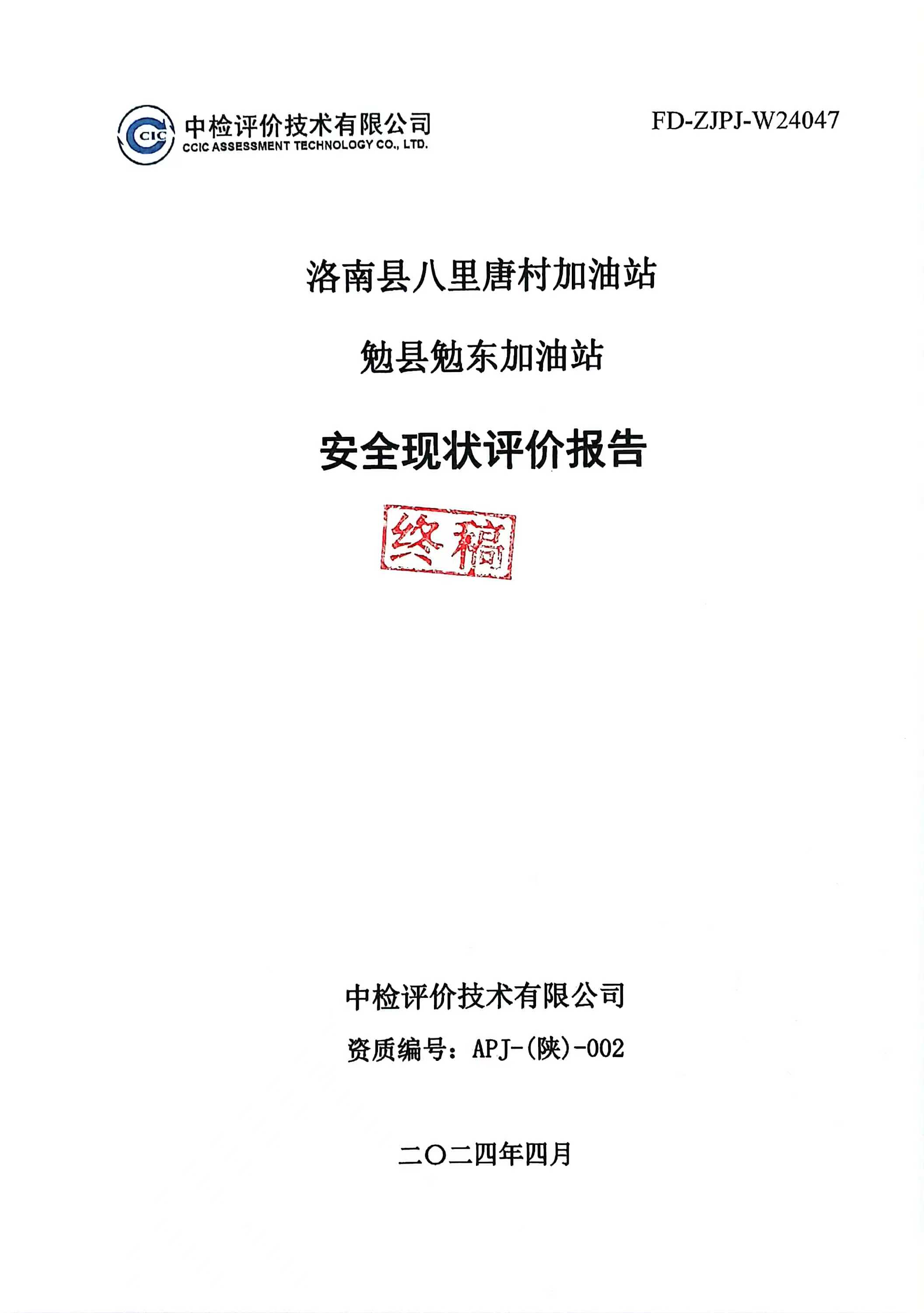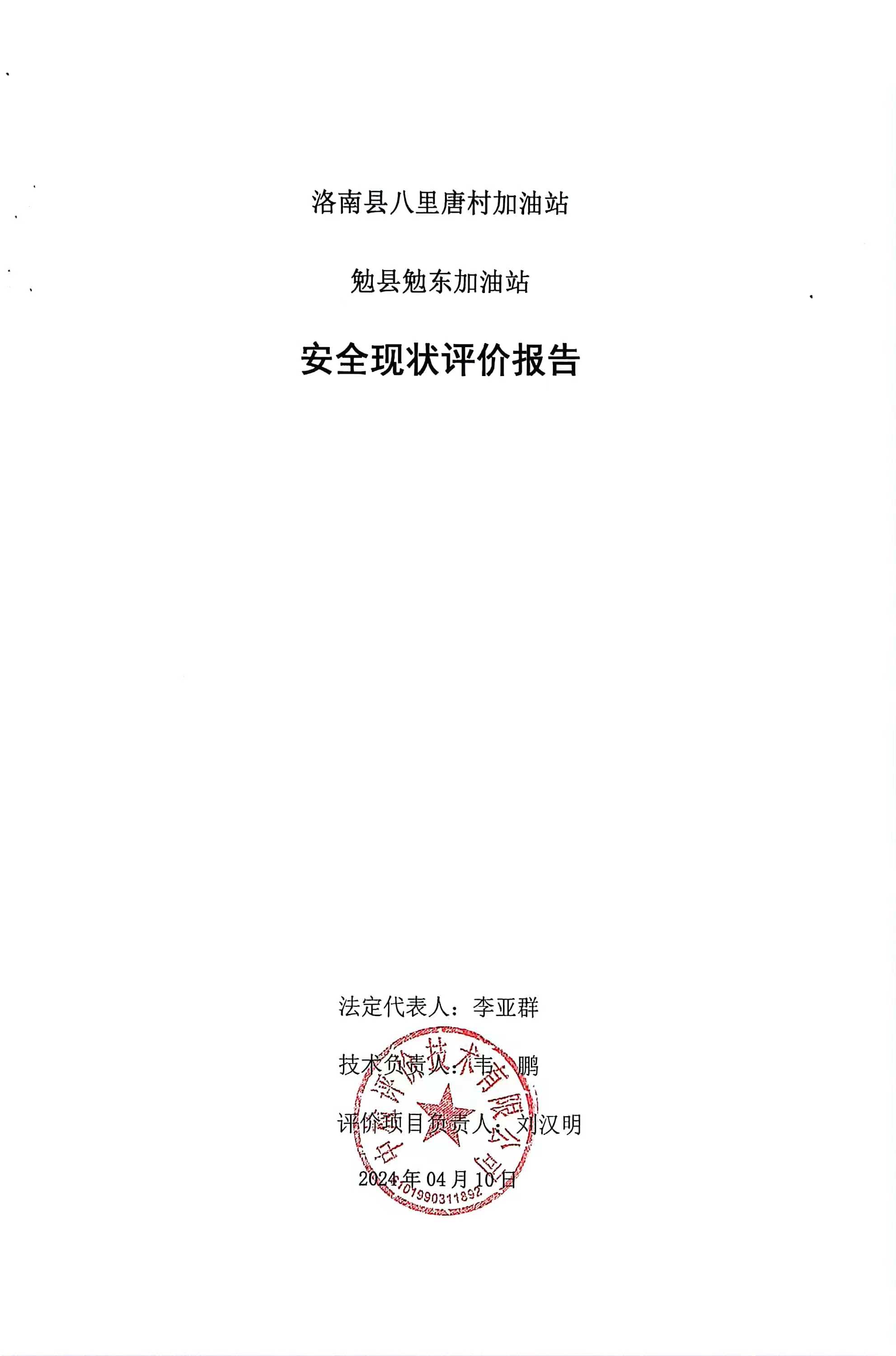洛南縣八里唐村加油站勉縣勉東加油站安全現(xiàn)狀評價報告