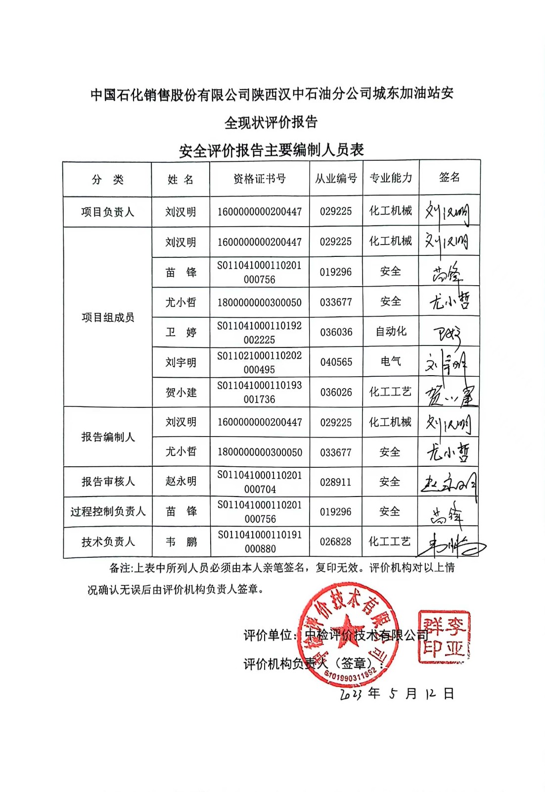 項目名稱 | 中國石化銷售股份有限公司陜西漢中石油分公司城東加油站安全現(xiàn)狀評價報告 | ||||||