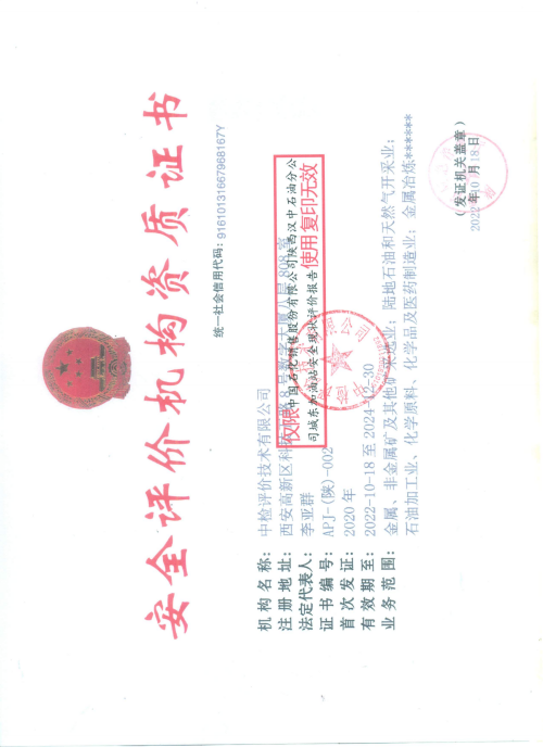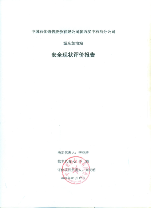 報告結論 | 本次安全現(xiàn)狀評價的結論為:中國石化銷售股份有限公司陜西漢中石油分公司城東加油站的安全現(xiàn)狀滿足經(jīng)營活動,安全風險可以接受,具備安全經(jīng)營條件。 | ||||||