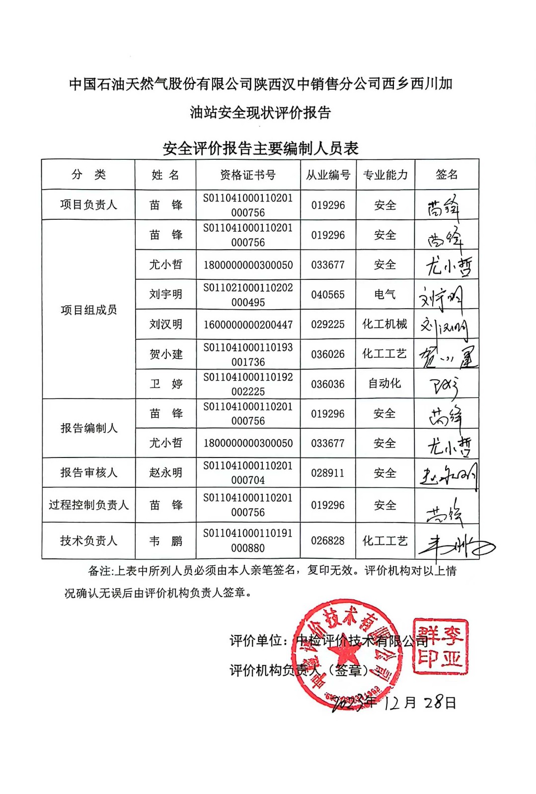 項(xiàng)目名稱 | 中國(guó)石油天然氣股份有限公司陜西漢中銷售分公司西鄉(xiāng)西川加油站安全現(xiàn)狀評(píng)價(jià)報(bào)告 | ||||||