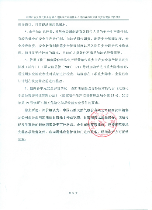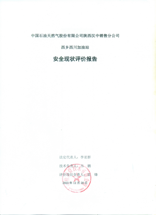 中國(guó)石油天然氣股份有限公司陜西漢中銷售分公司西鄉(xiāng)西川加油站安全現(xiàn)狀評(píng)價(jià)報(bào)告