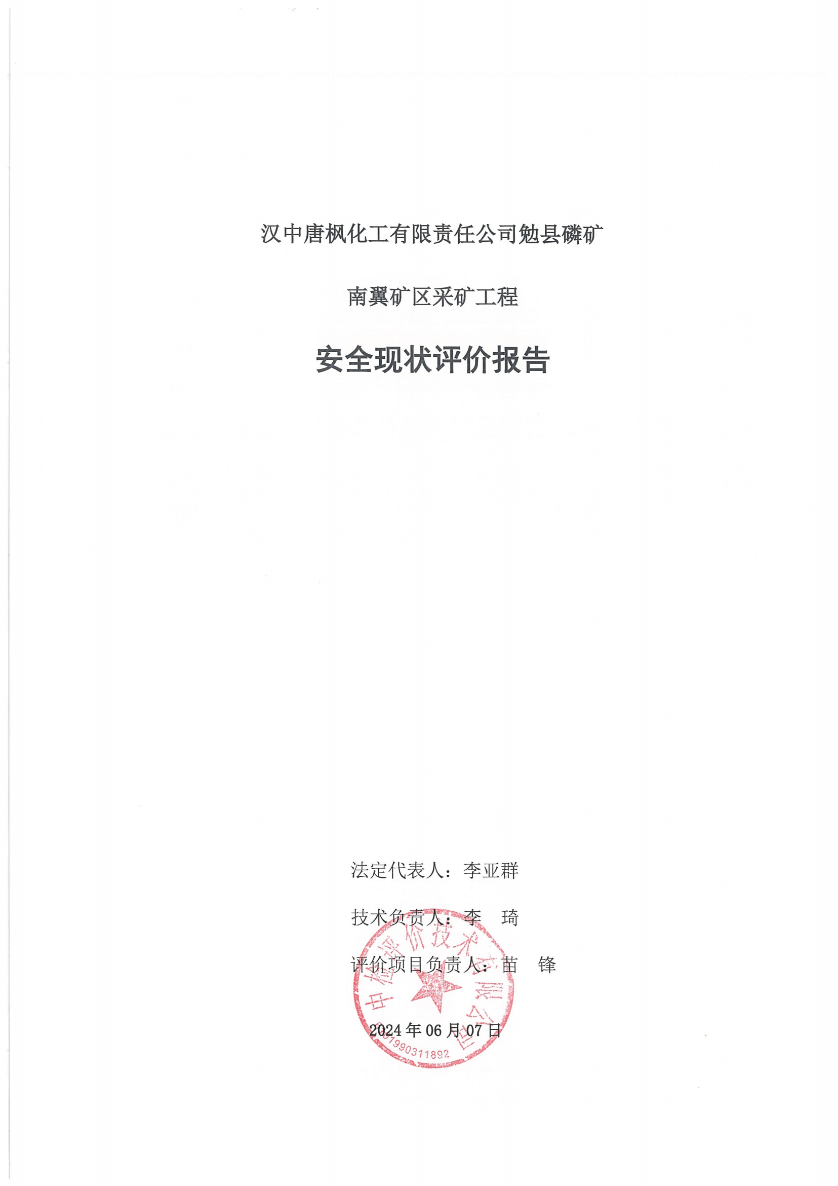漢中唐楓化工有限責(zé)任公司勉縣磷礦南翼礦區(qū)采礦工程安全現(xiàn)狀評(píng)價(jià)報(bào)告