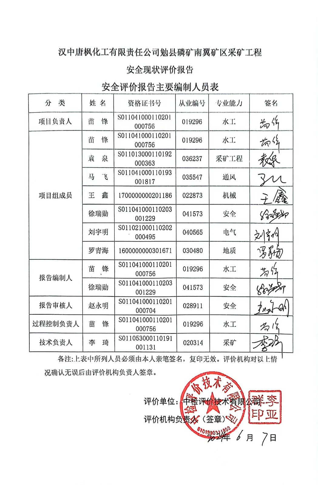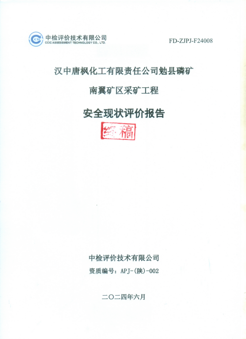 項(xiàng)目名稱 | 漢中唐楓化工有限責(zé)任公司勉縣磷礦南翼礦區(qū)采礦工程安全現(xiàn)狀評(píng)價(jià)報(bào)告 | ||||||