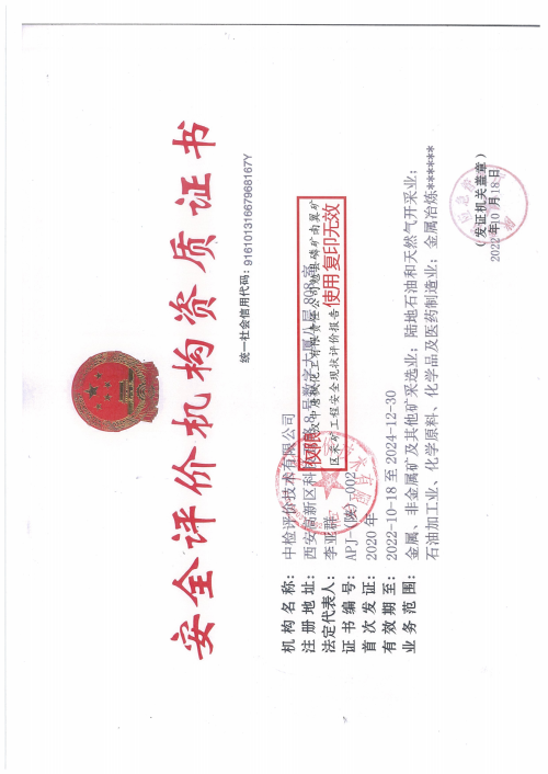機(jī)構(gòu)名稱 | 中檢評(píng)價(jià)技術(shù)有限公司 | 資質(zhì)證號(hào) | APJ-(陜)-002 | ||||