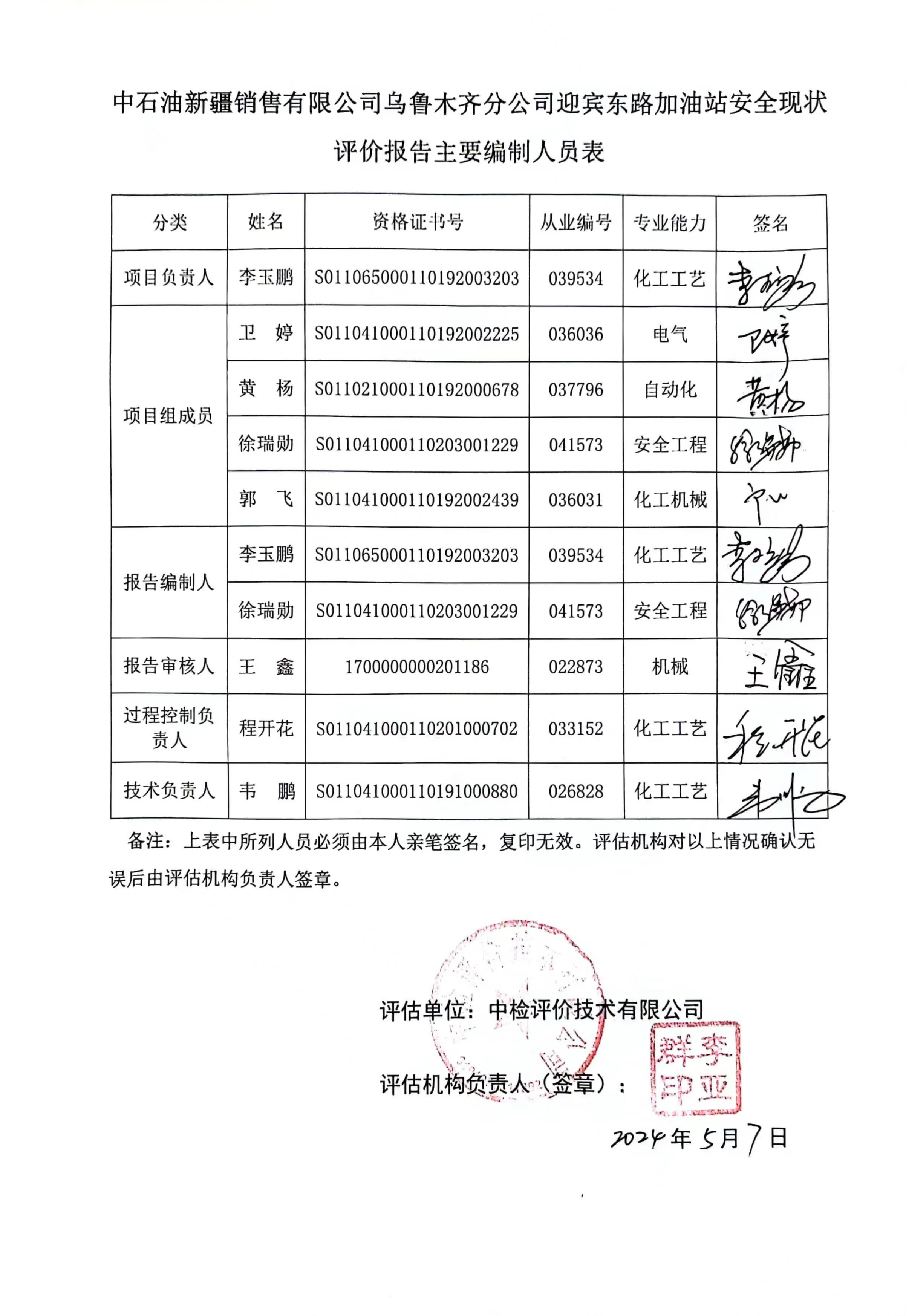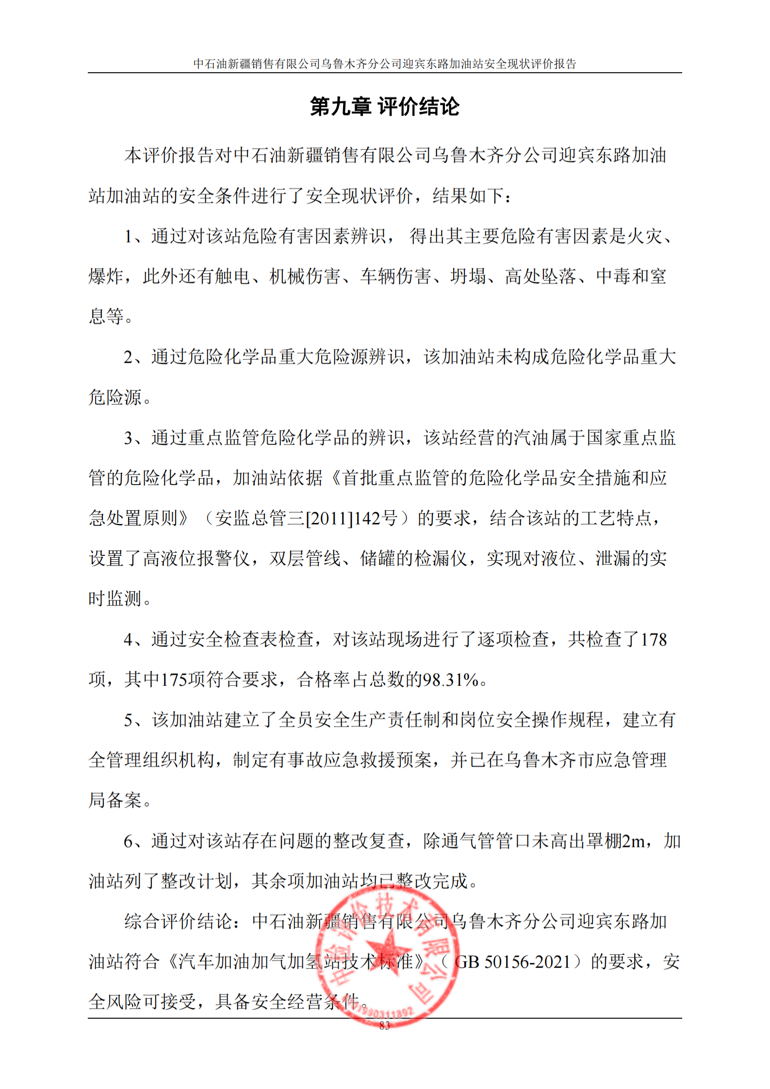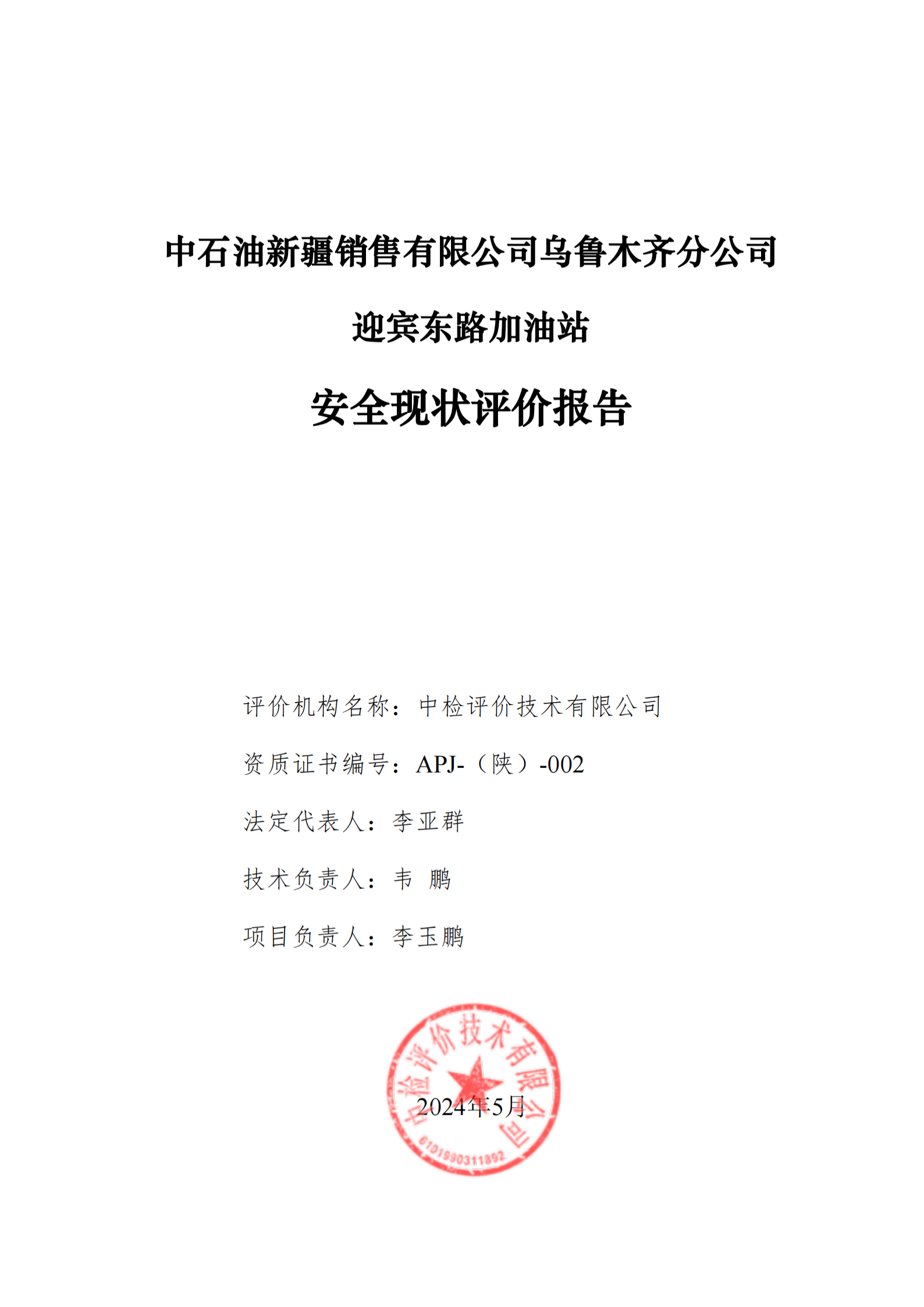 中石油新疆銷售有限公司烏魯木齊分公司迎賓東路加油站安全現(xiàn)狀評價報告